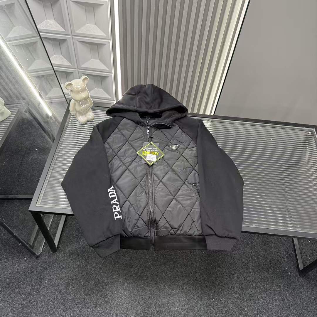 秋冬爆款热销款推荐Prada普拉达二棉加厚连帽外套 拼接袖菱 413617