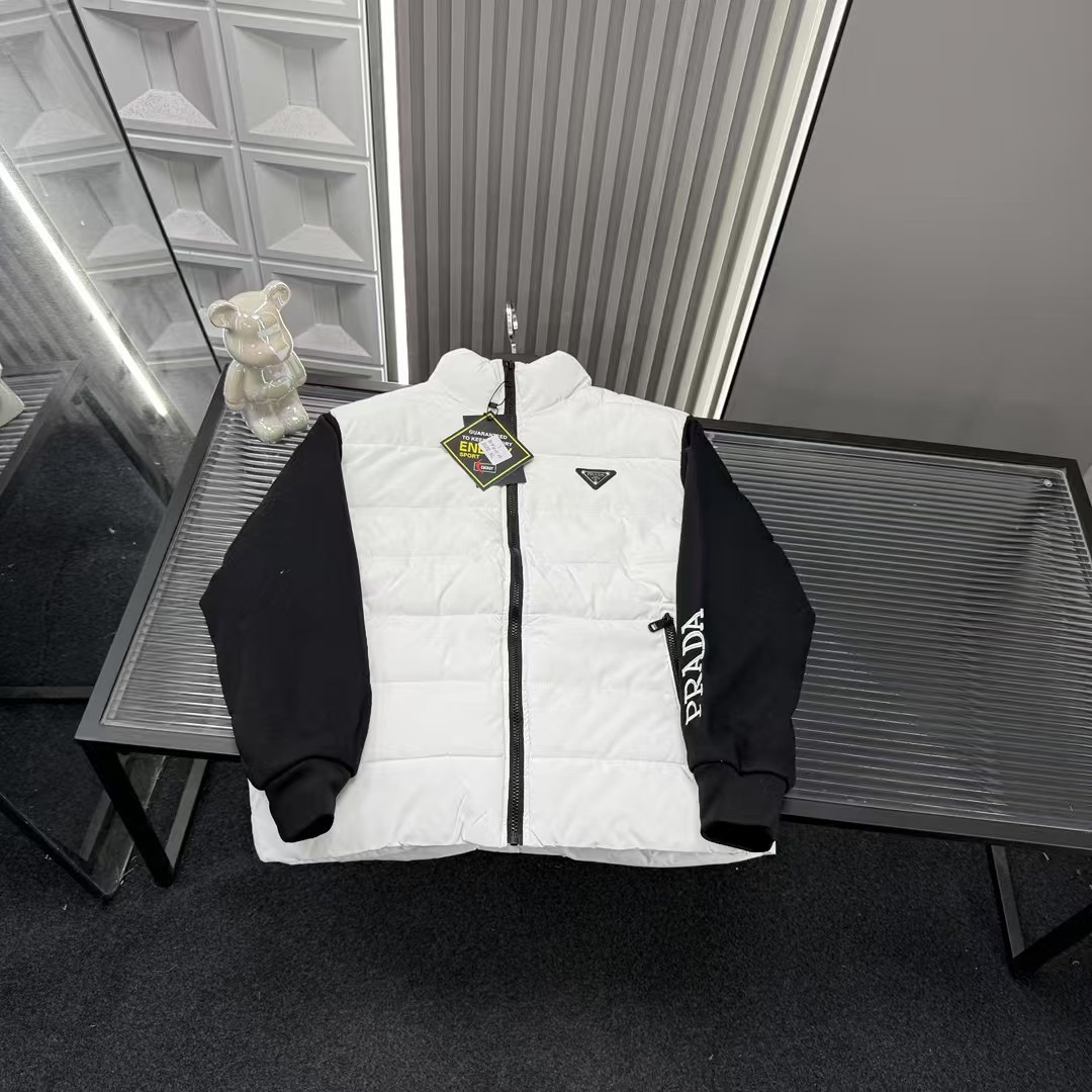 秋冬爆款热销款推荐Prada普拉达立领羽绒棉服 拼接袖胸前金 413618