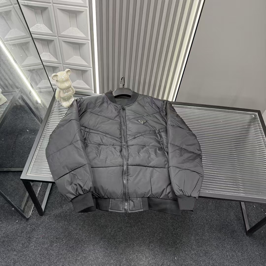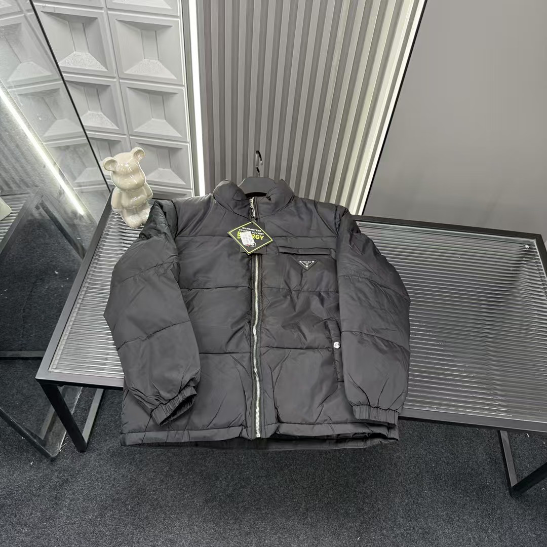 秋冬爆款热销款推荐Prada普拉达立领羽绒棉服 胸前金属三角 413623