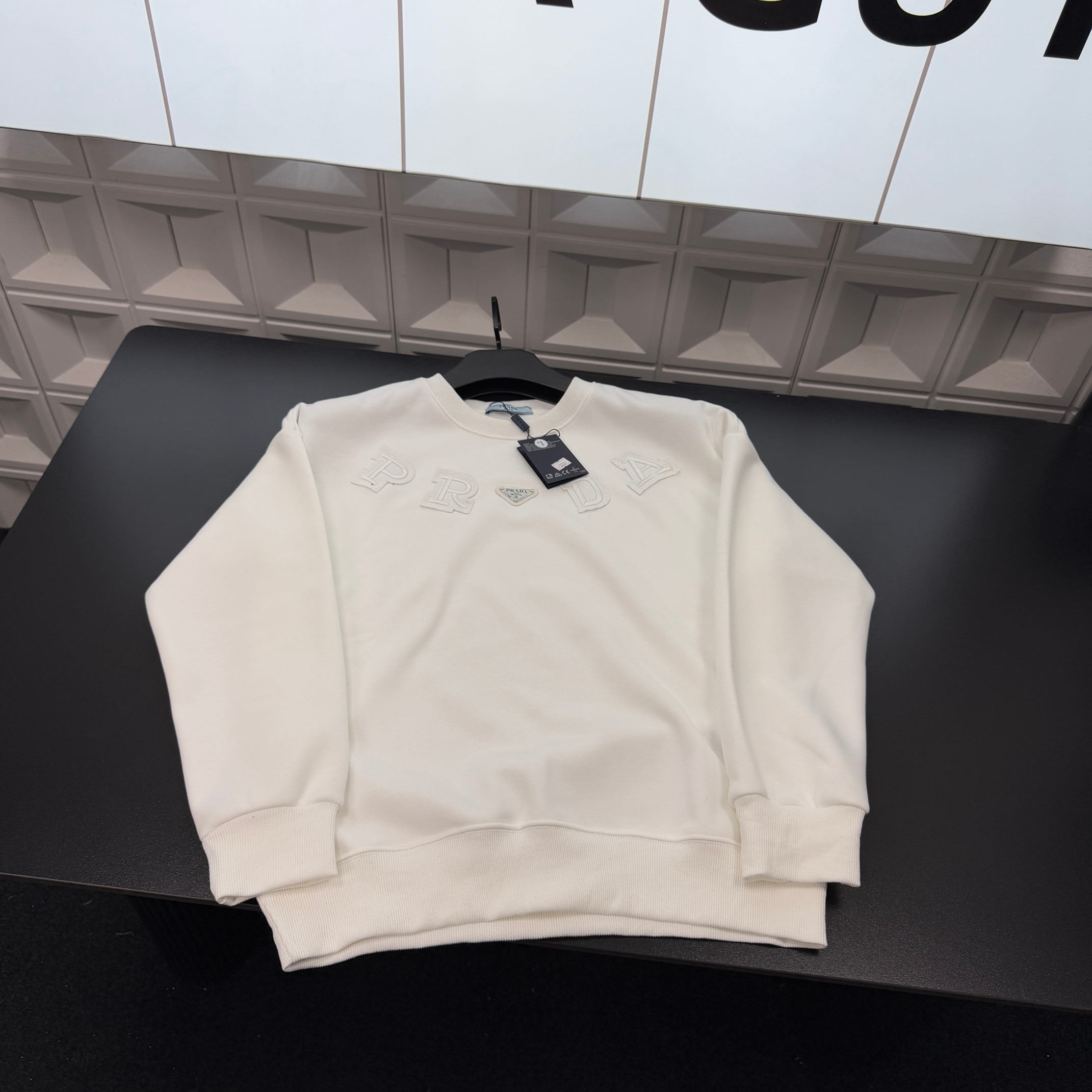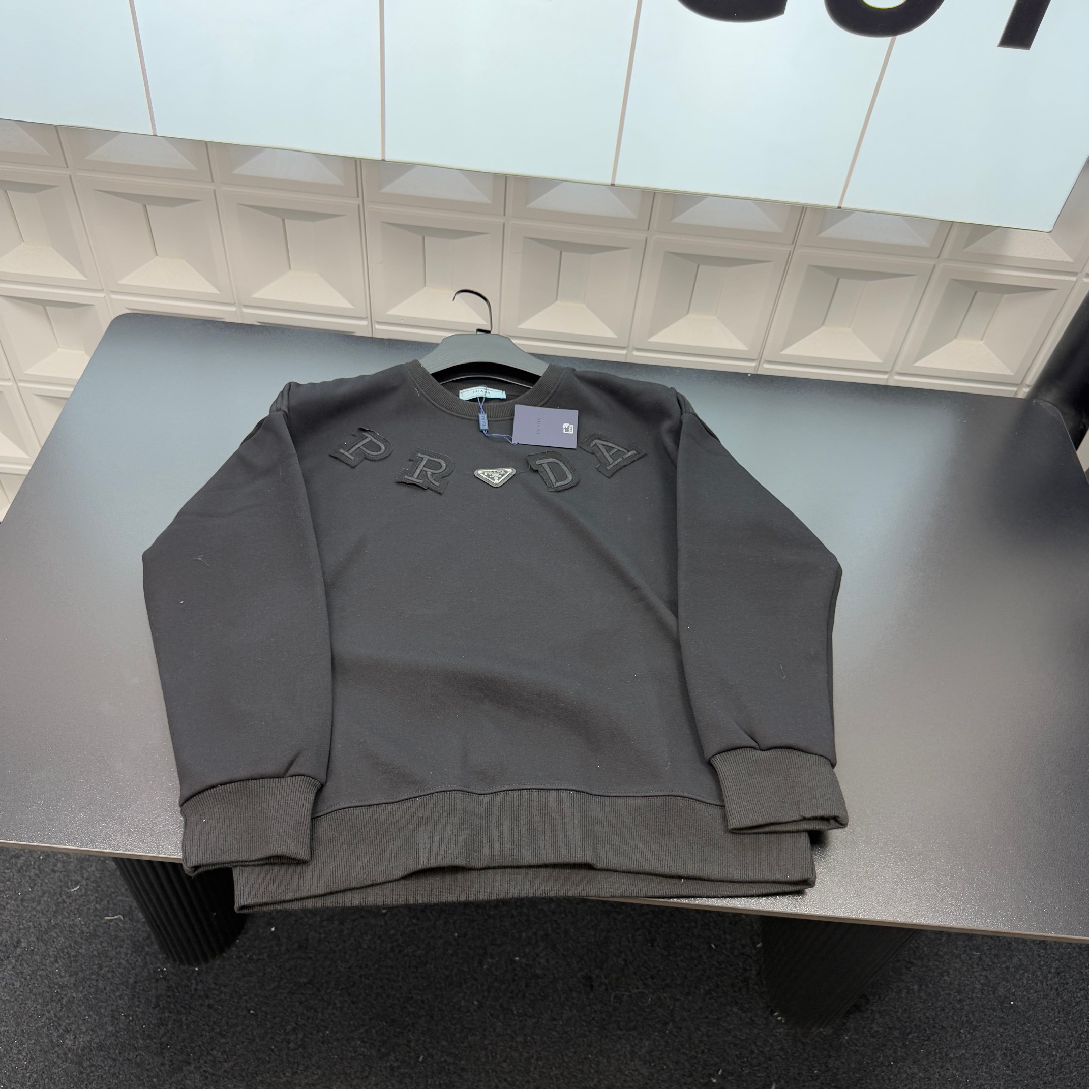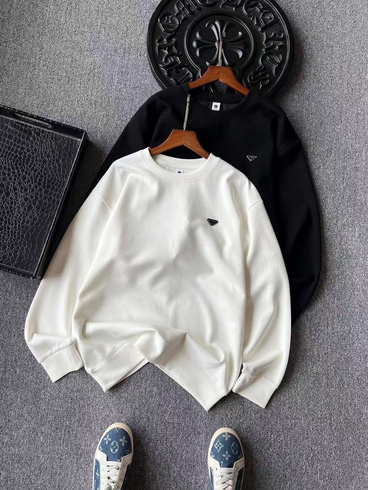 冬季热销爆款网红博主推荐款Prada普拉达加绒卫衣 胸前贴布 400096