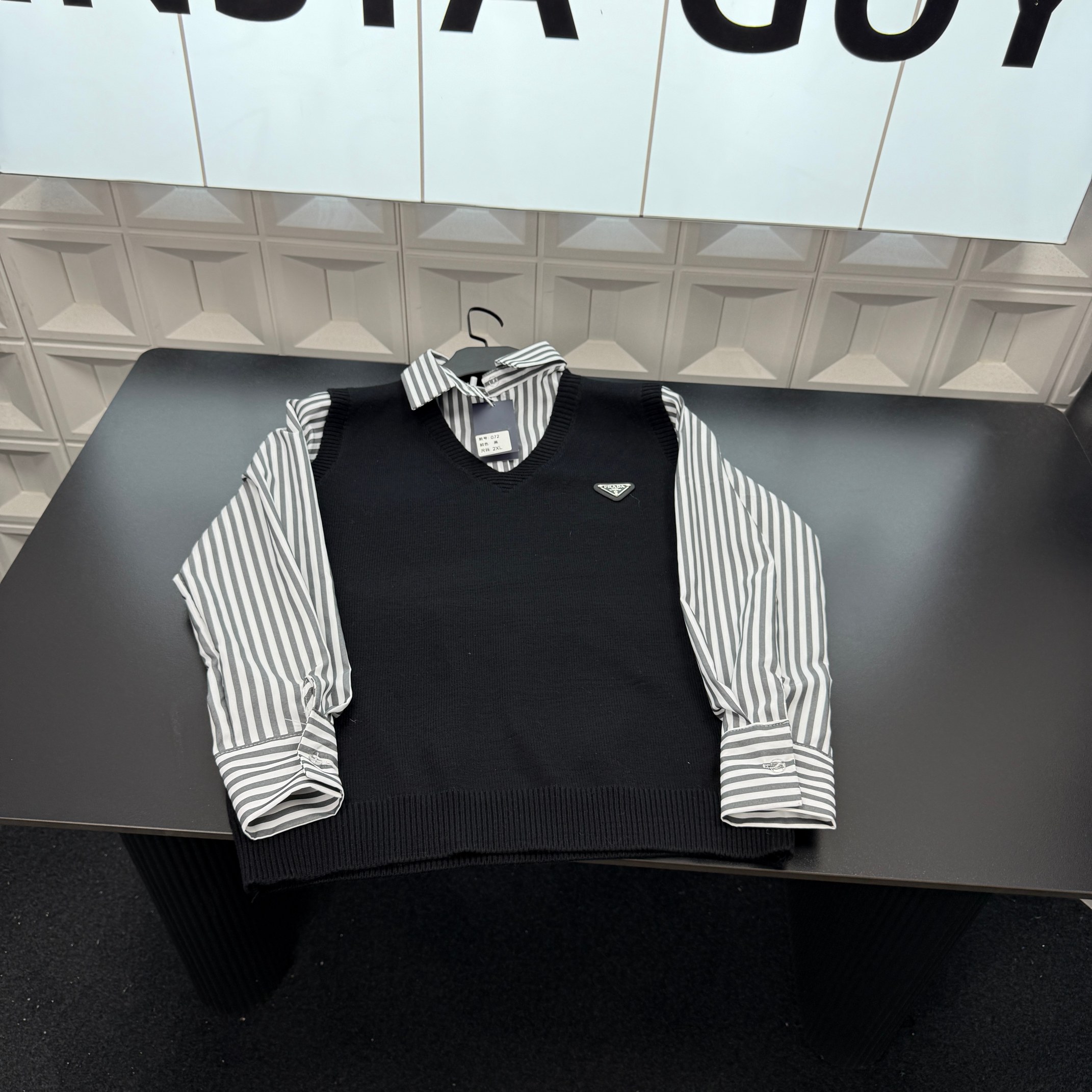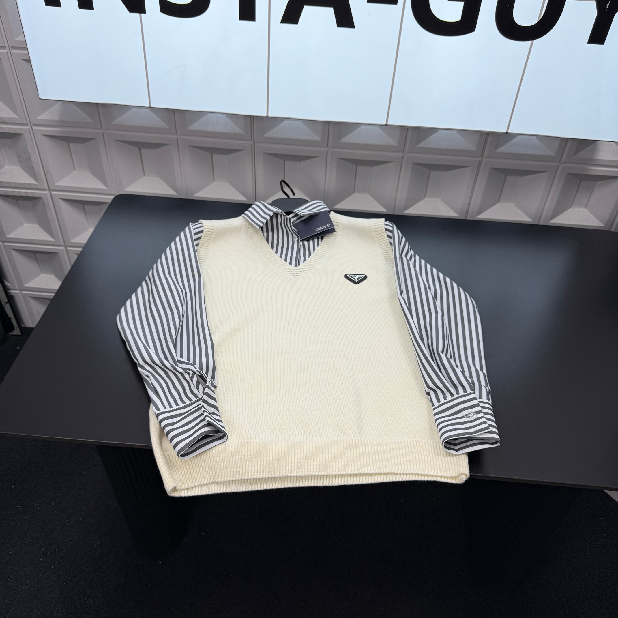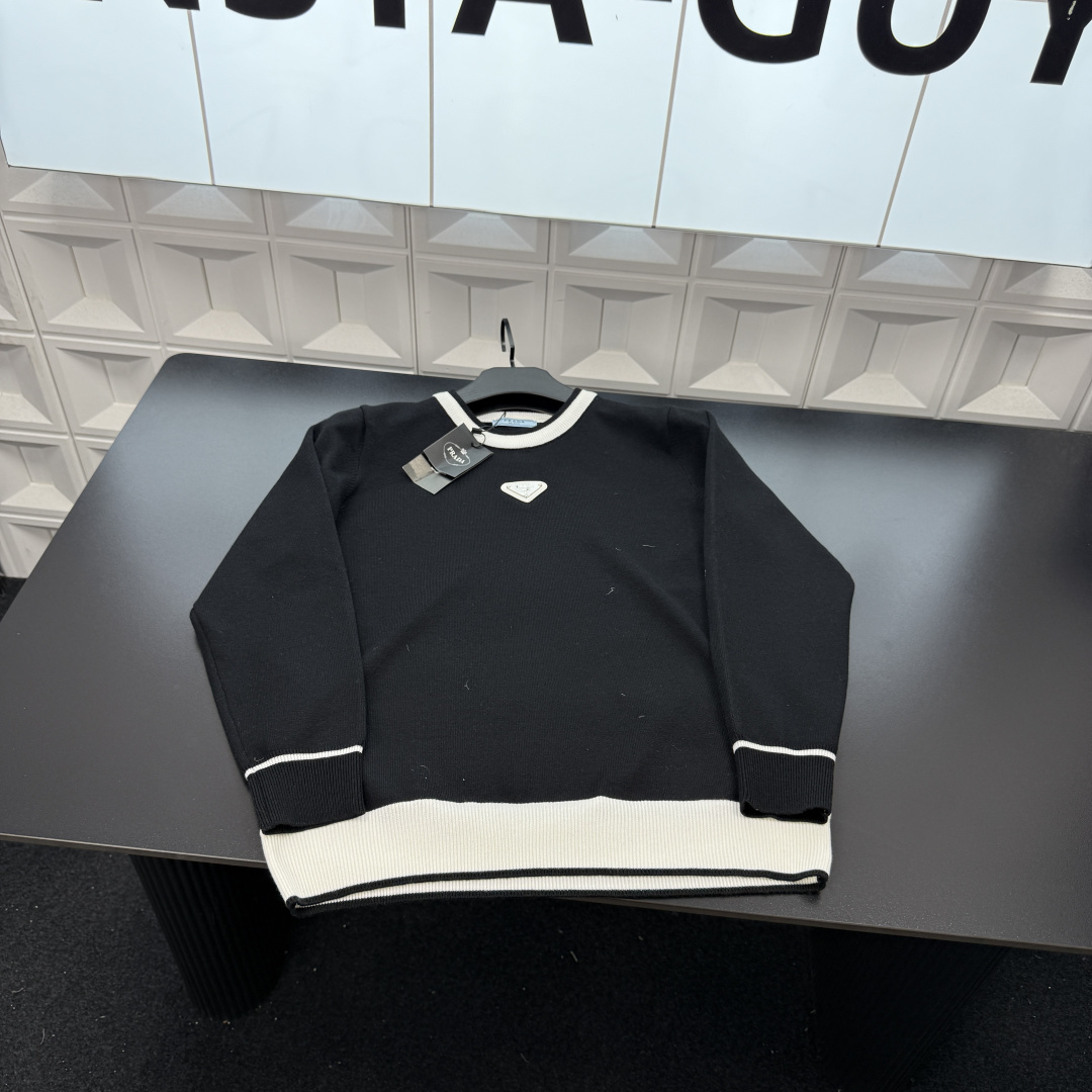 冬季热销爆款网红博主推荐款Prada普拉达拼接条针织毛衣 胸 400116