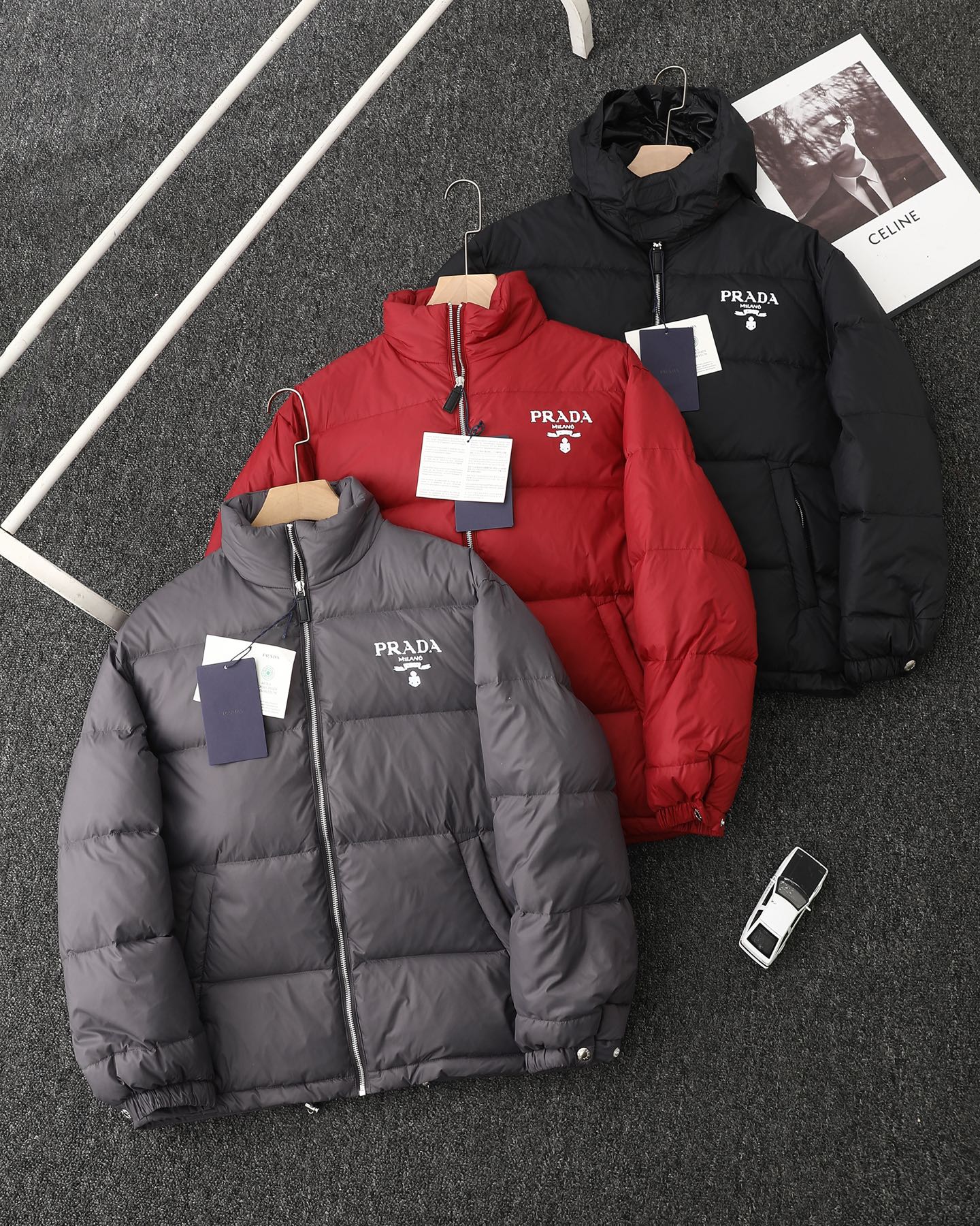 出入柜子无压力 普拉达Prada秋冬保暖加厚鹅绒羽绒服棉衣红 396847
