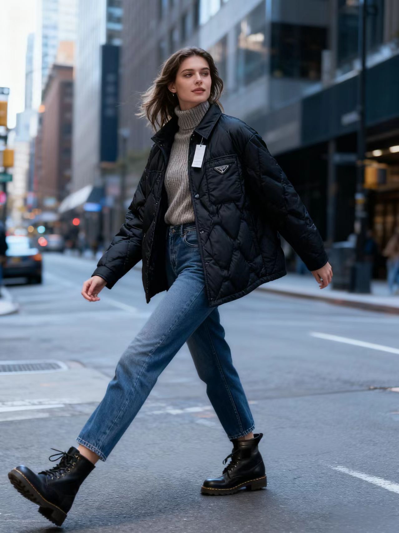 冬季热销爆款网红博主推荐款普拉达立领夹克外套 胸前后背金属三 398282