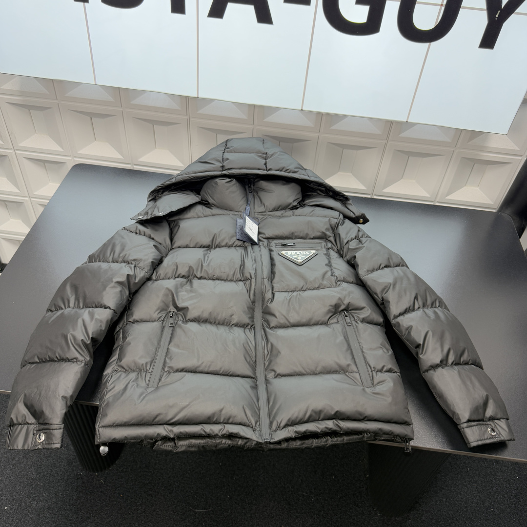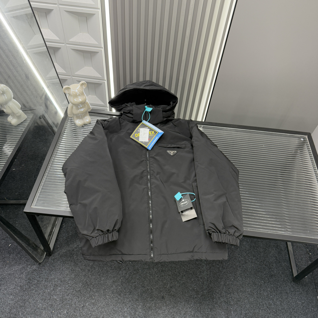 冬季热销爆款网红博主推荐款Prada普拉达连帽羽绒棉服 简约 400135