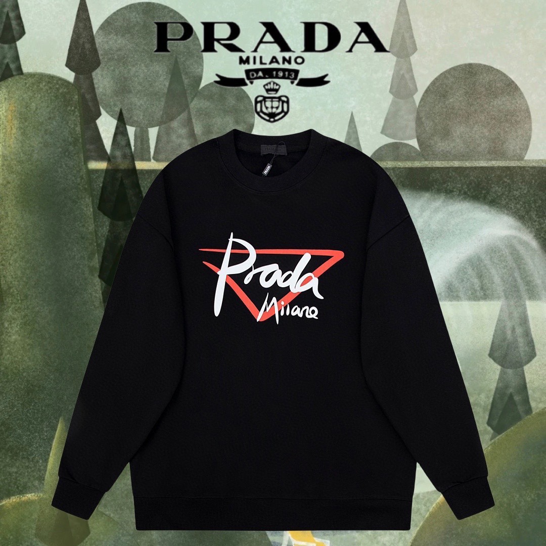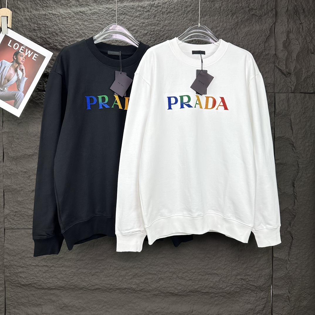 顶级最高版本 普拉达 prada 经典胸前牙刷绣套头圆领卫衣 320100