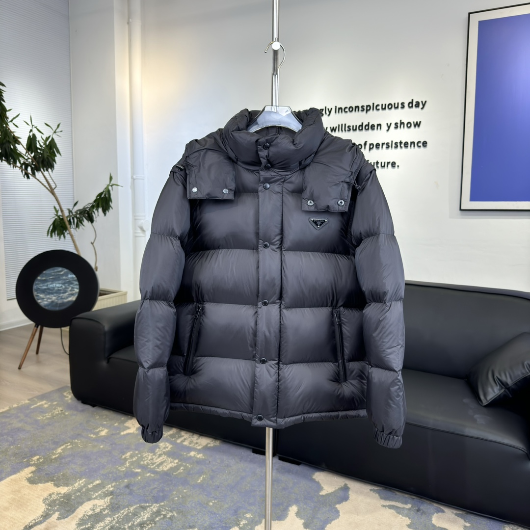 PRADA普拉达连帽防风中长款羽绒服 经典 388150
