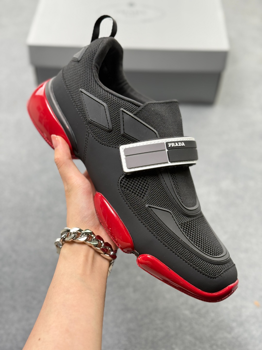 公司级PRADA普拉达 织物橡胶 厚底套脚 透气低帮生活休闲