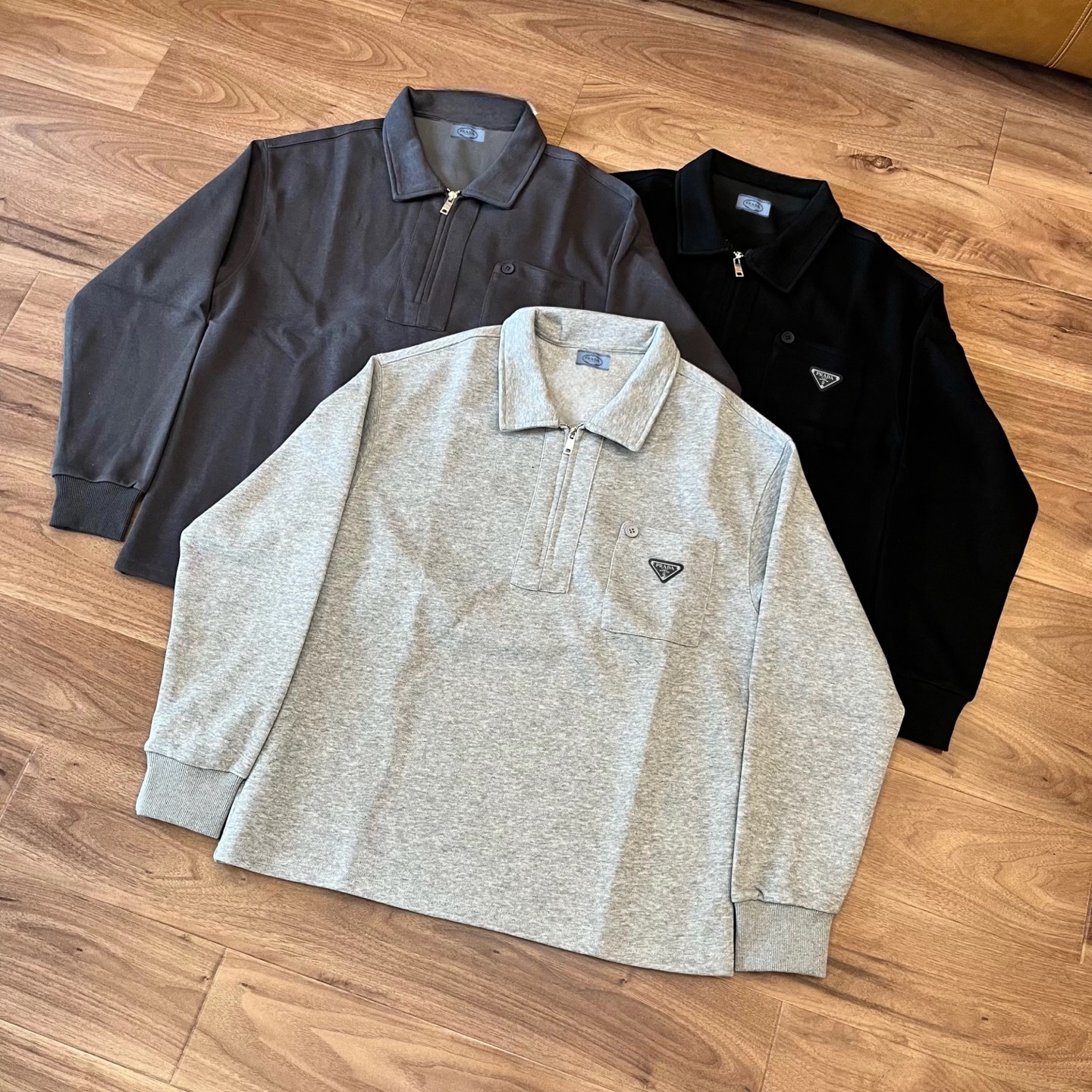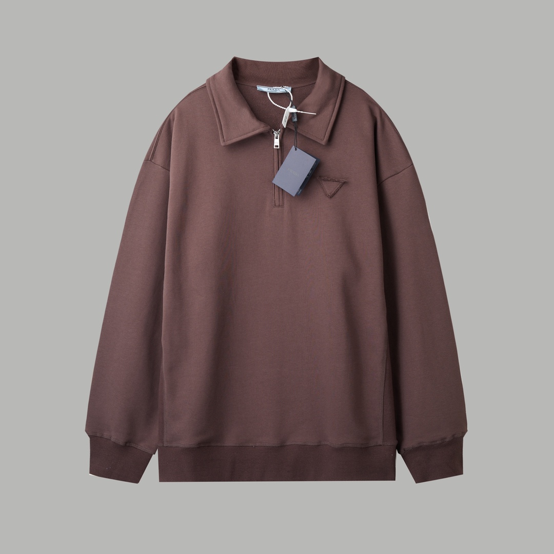 人气爆款 Prada 普拉达翻领半拉链胸前经典三角标 320248