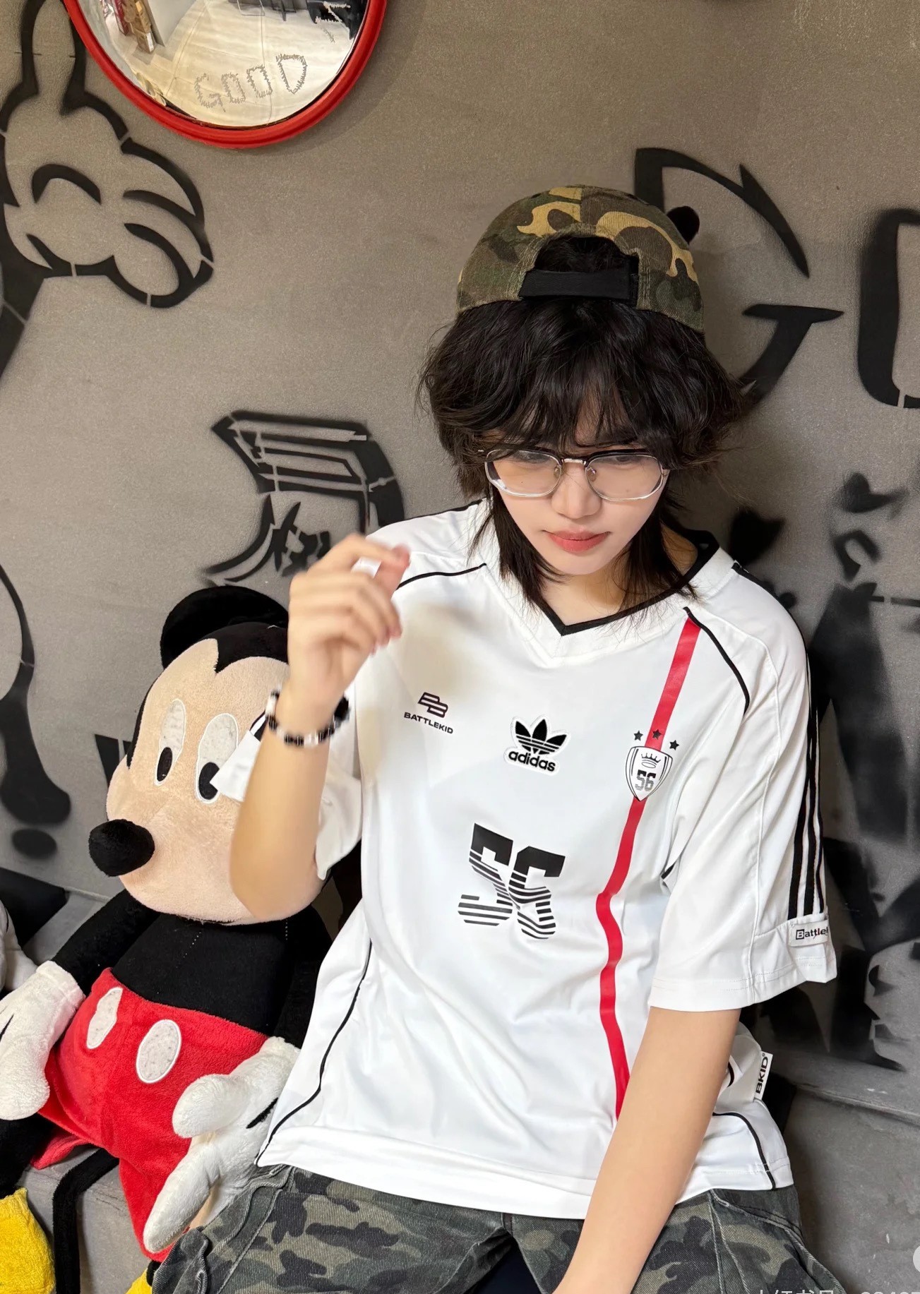 阿迪达斯Adidas 三叶草9号红线 户外运动球衣趣味印花短 557030