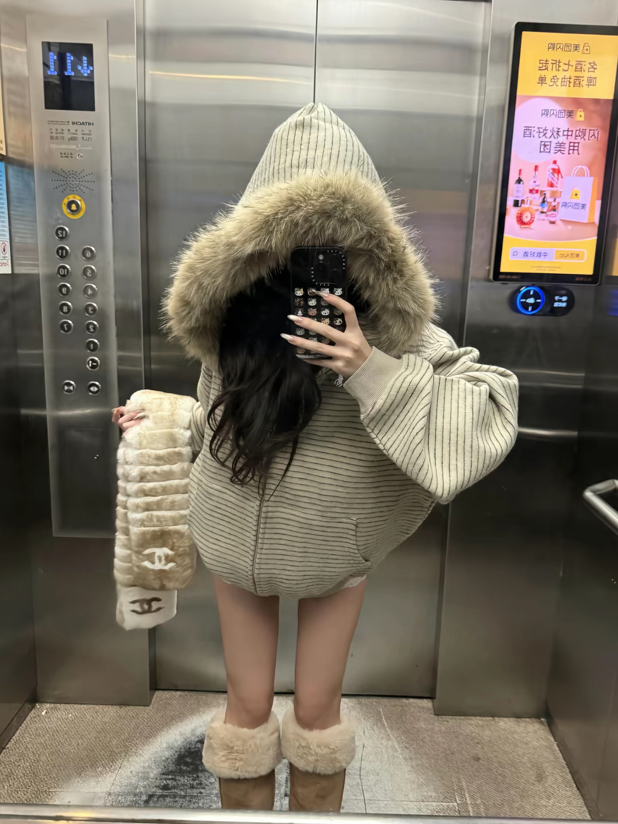 𝗥𝗮𝗹𝗽𝗵 𝗟𝗮𝘂𝗿𝗲𝗻拉夫劳伦新款大毛领条纹连帽毛绒外套