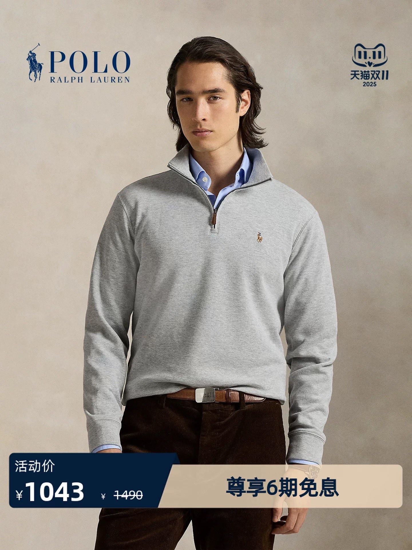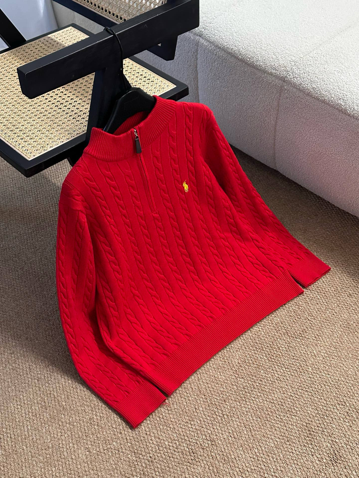 Ralph Lauren 拉夫劳伦RL金色小马刺绣麻花半拉链 383736