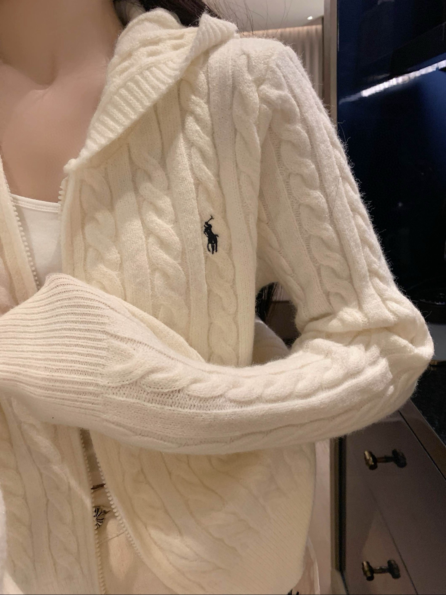 Ralph Lauren 拉夫劳伦RL小马刺绣麻花连帽长袖拉 383652