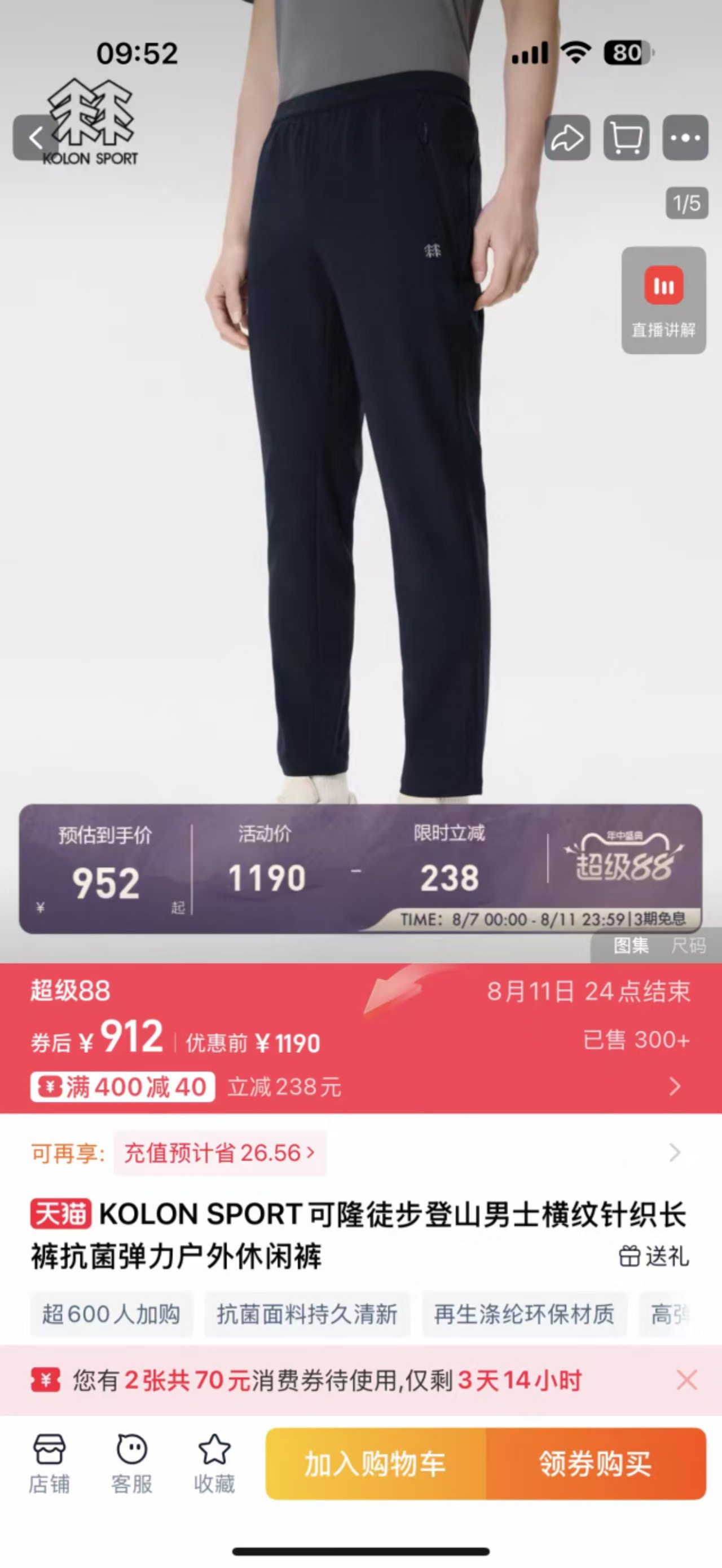 2026新款KOLON SPORT可隆针织长裤 男子徒步登山 493073