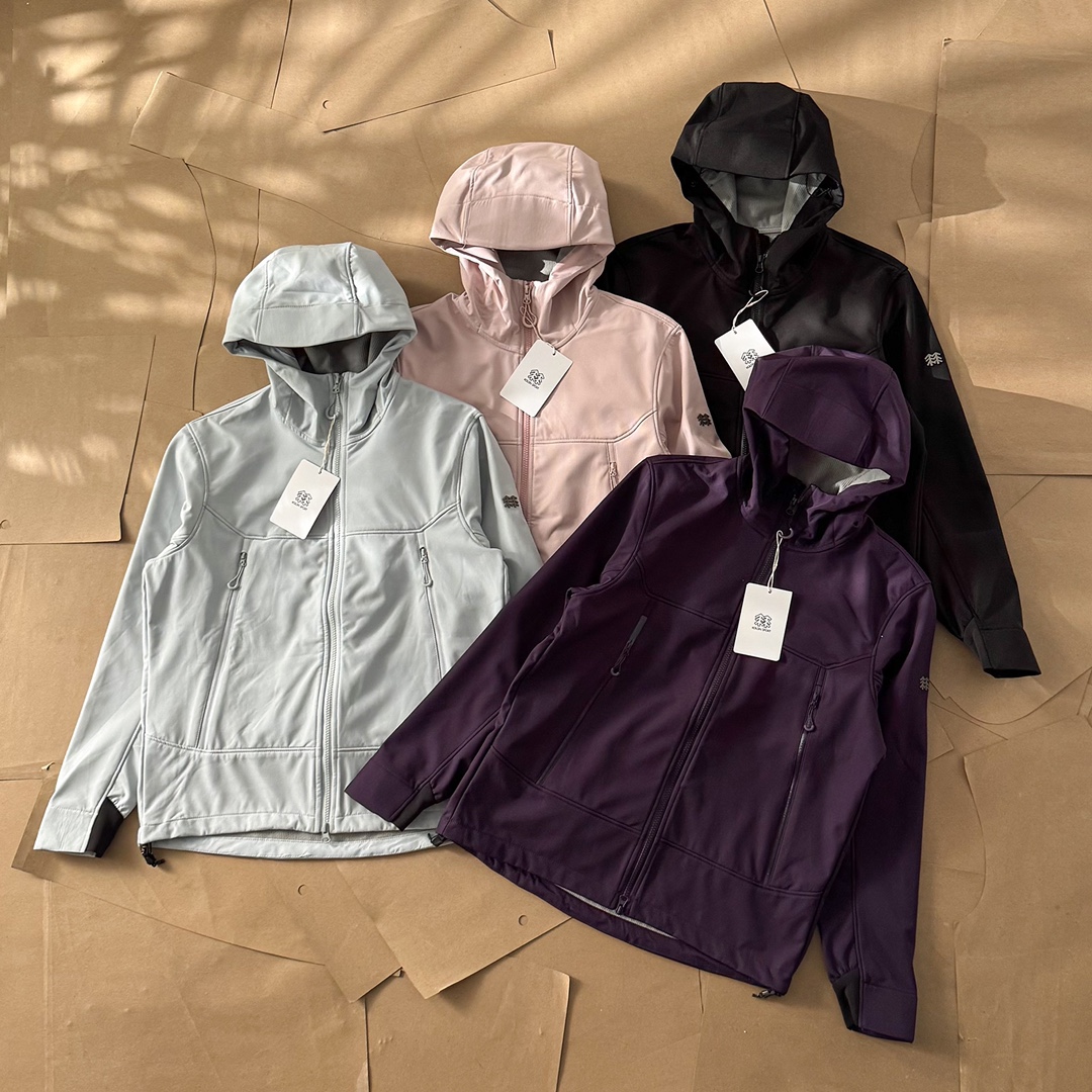 可隆25年秋冬新品男士女士户外连帽加绒软壳情侣冲锋衣夹克