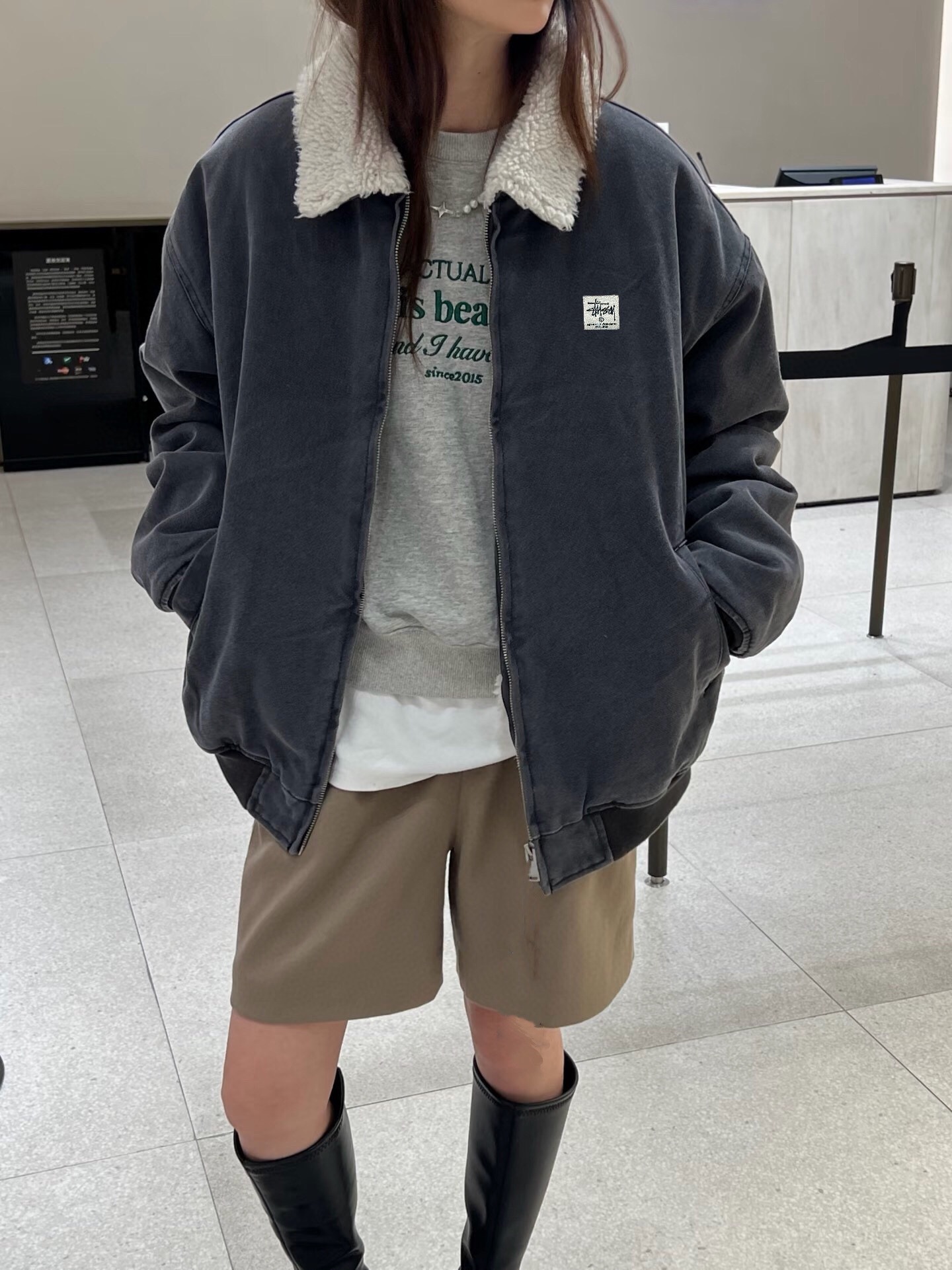Stussy 斯图西冬季仿羊羔毛可拆卸翻领加厚水洗做旧工装外 347261