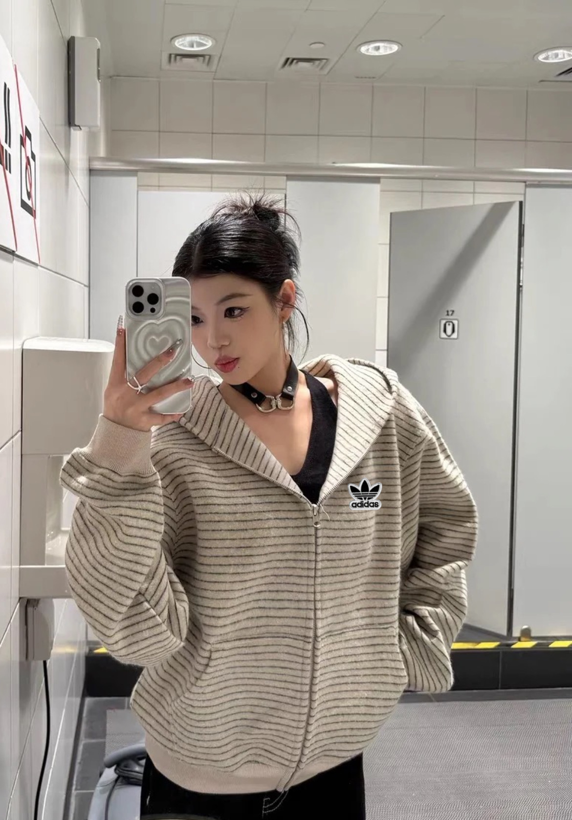 阿迪达斯三叶草Adidas亲肤保暖毛呢条纹连帽卫衣外套男女秋 378355