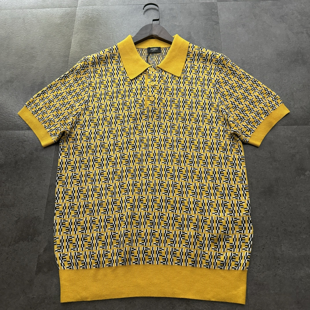 FENDI芬迪2025新款提花丝光毛衣翻领Polo 368829