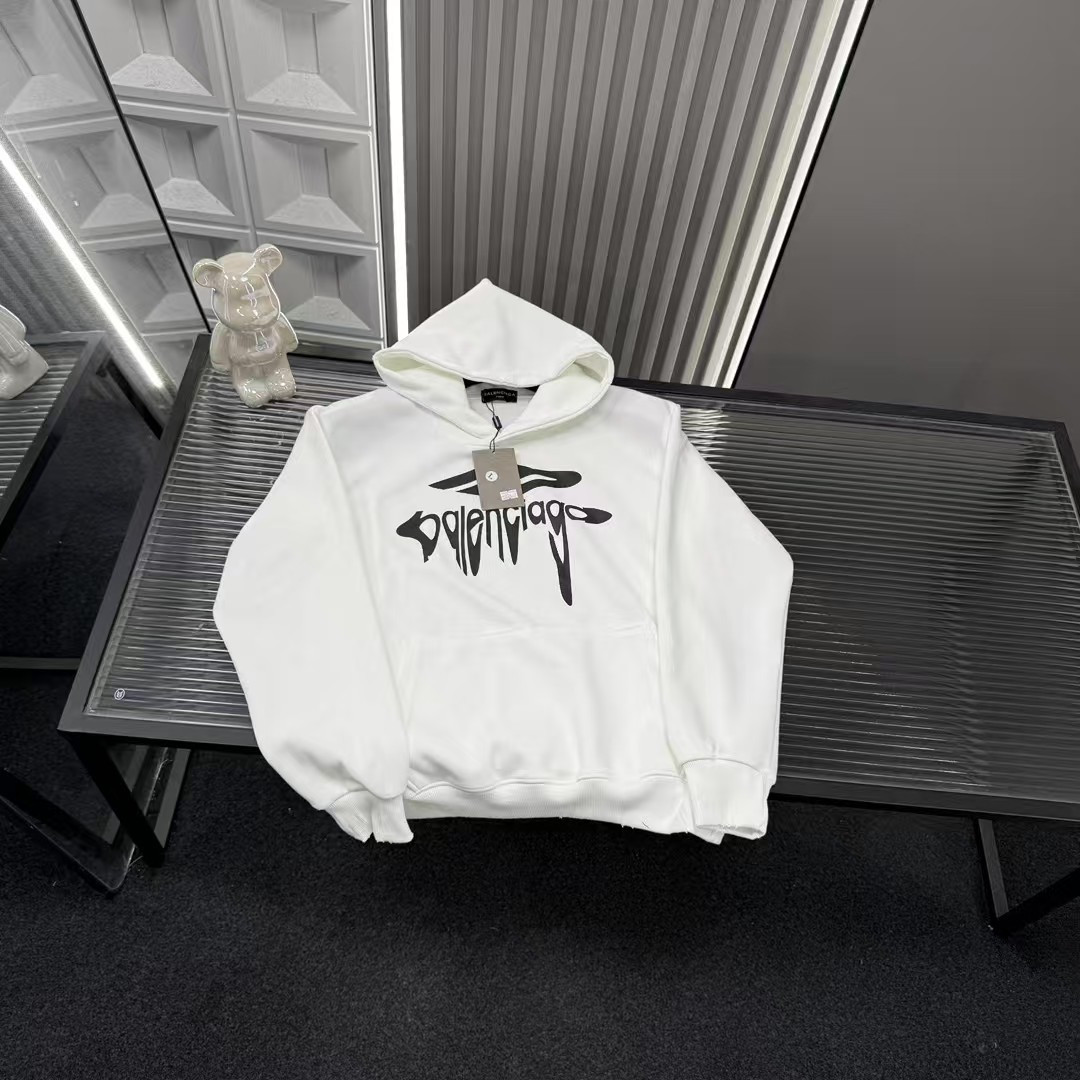 此款式售后到明年 秋季热销款推荐巴黎世家溶解字母图案连帽卫衣 435980