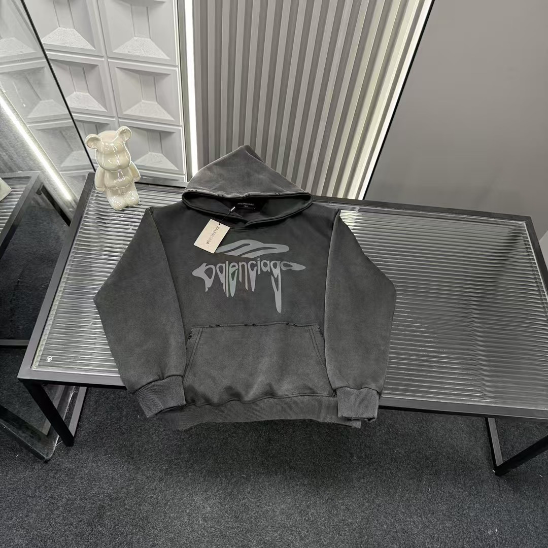 此款式售后到明年 秋季热销款推荐巴黎世家溶解字母图案连帽卫衣 435981