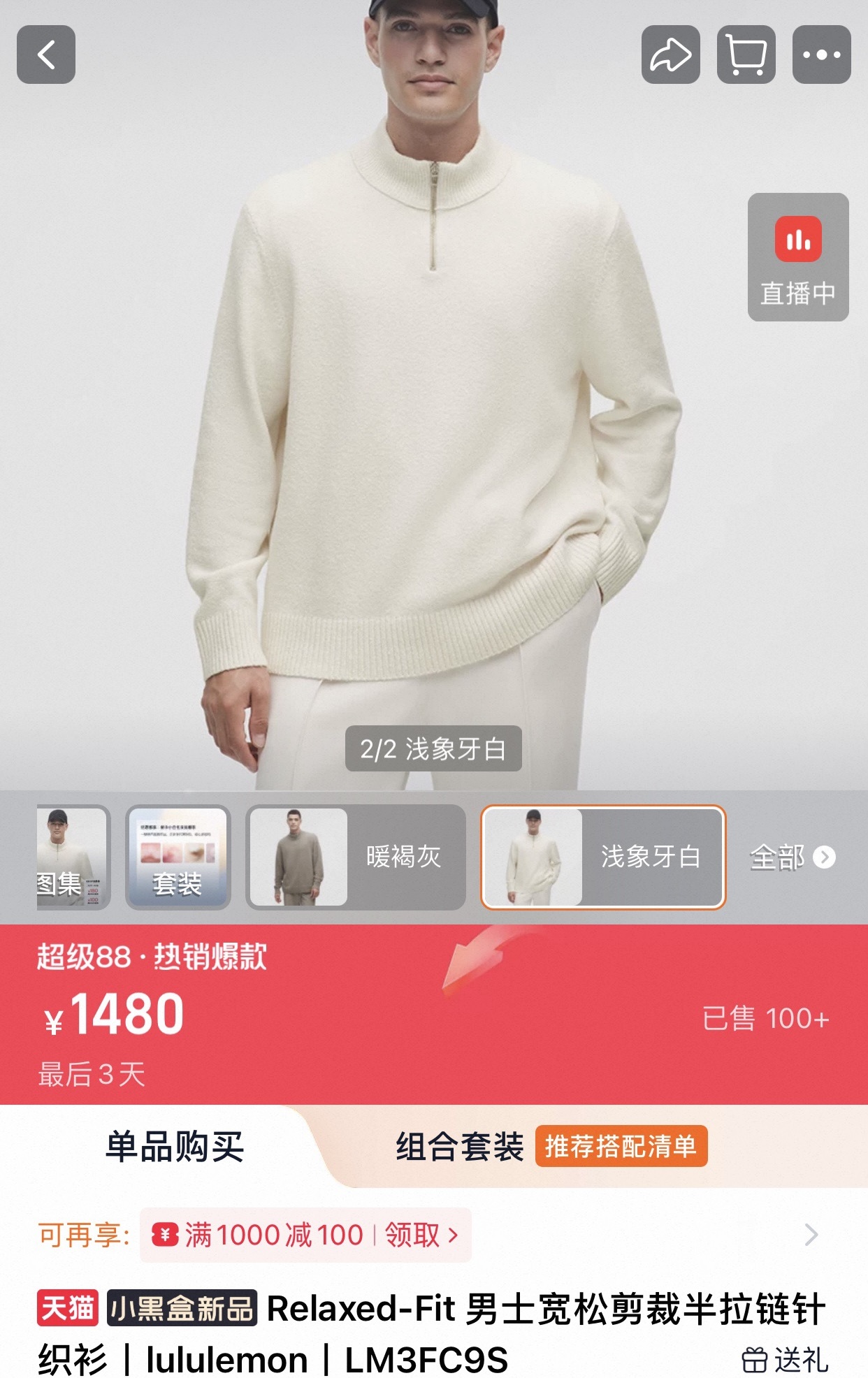 LULU Relaxed Fit 男士宽松剪裁半拉链针织衫丨 432274