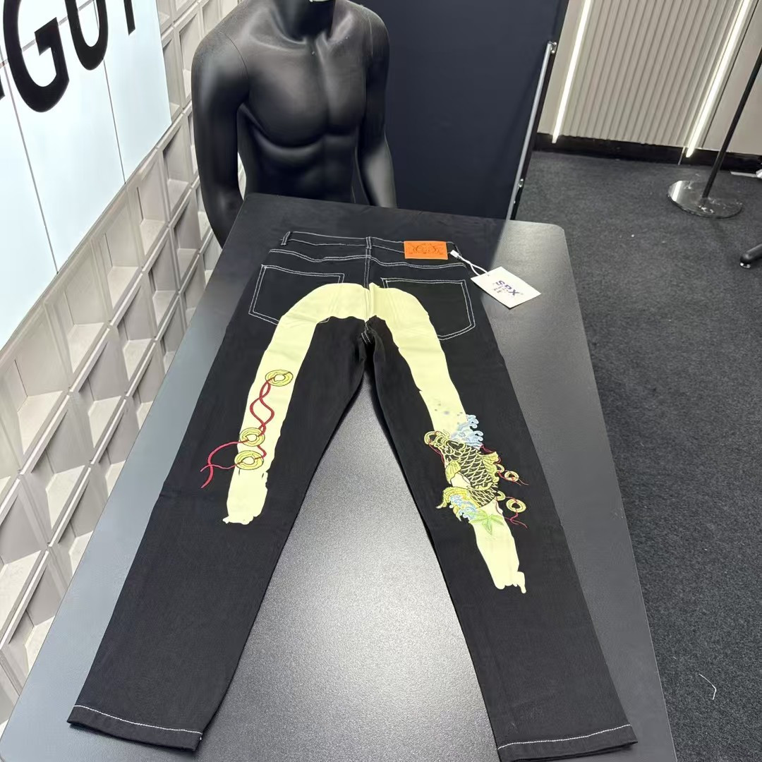 秋冬爆款热销款推荐Evisu福神牛仔裤 后背大M铜钱串锦鲤图 432911