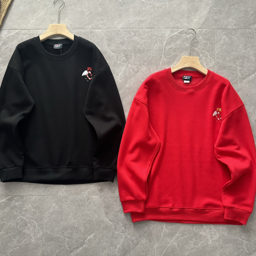 斐乐FL涂鸦翅膀皇冠情侣款新年银狐绒圆领卫衣