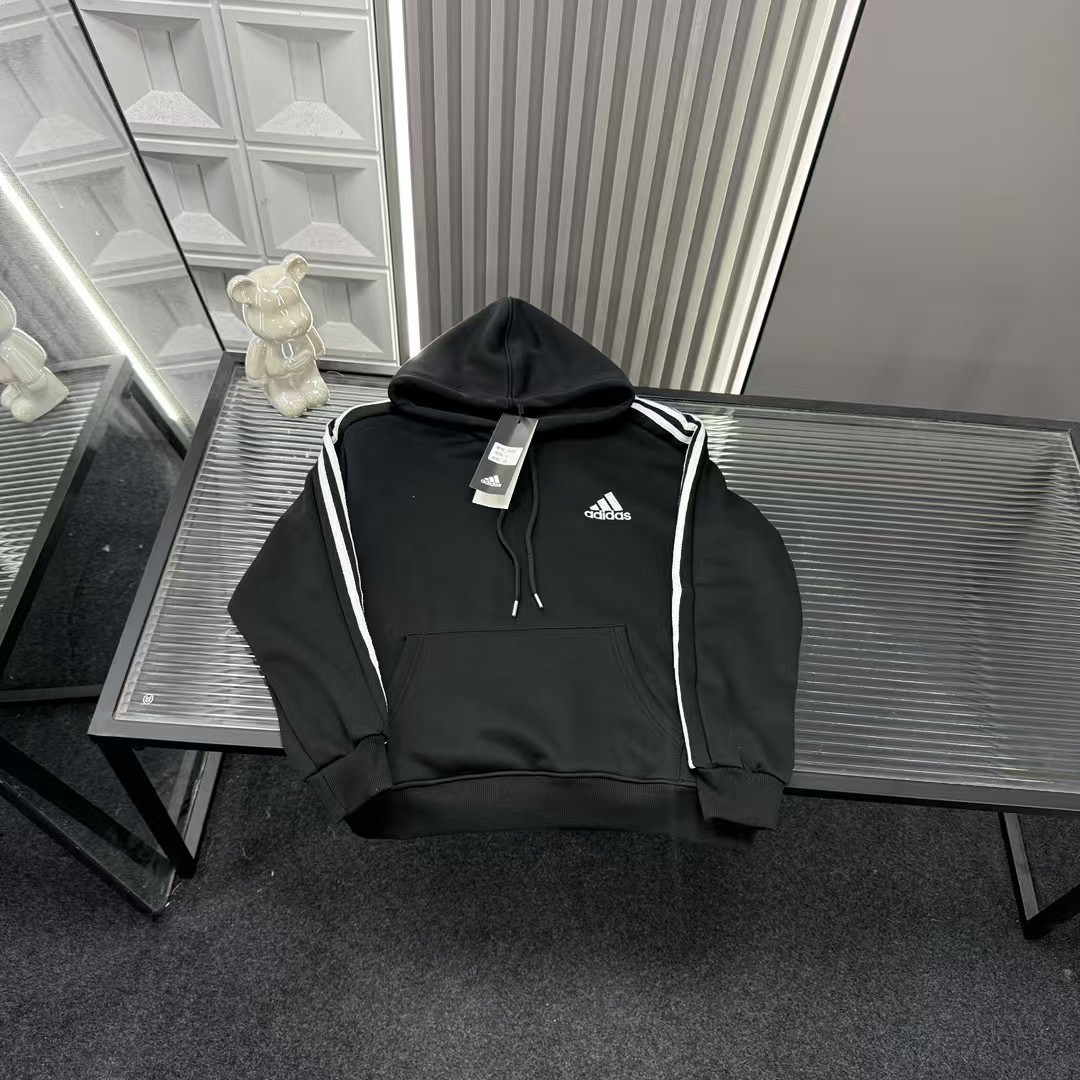 秋冬爆款热销款推荐AD阿迪达斯加绒连帽卫衣 经典三道杠 胸前 423415