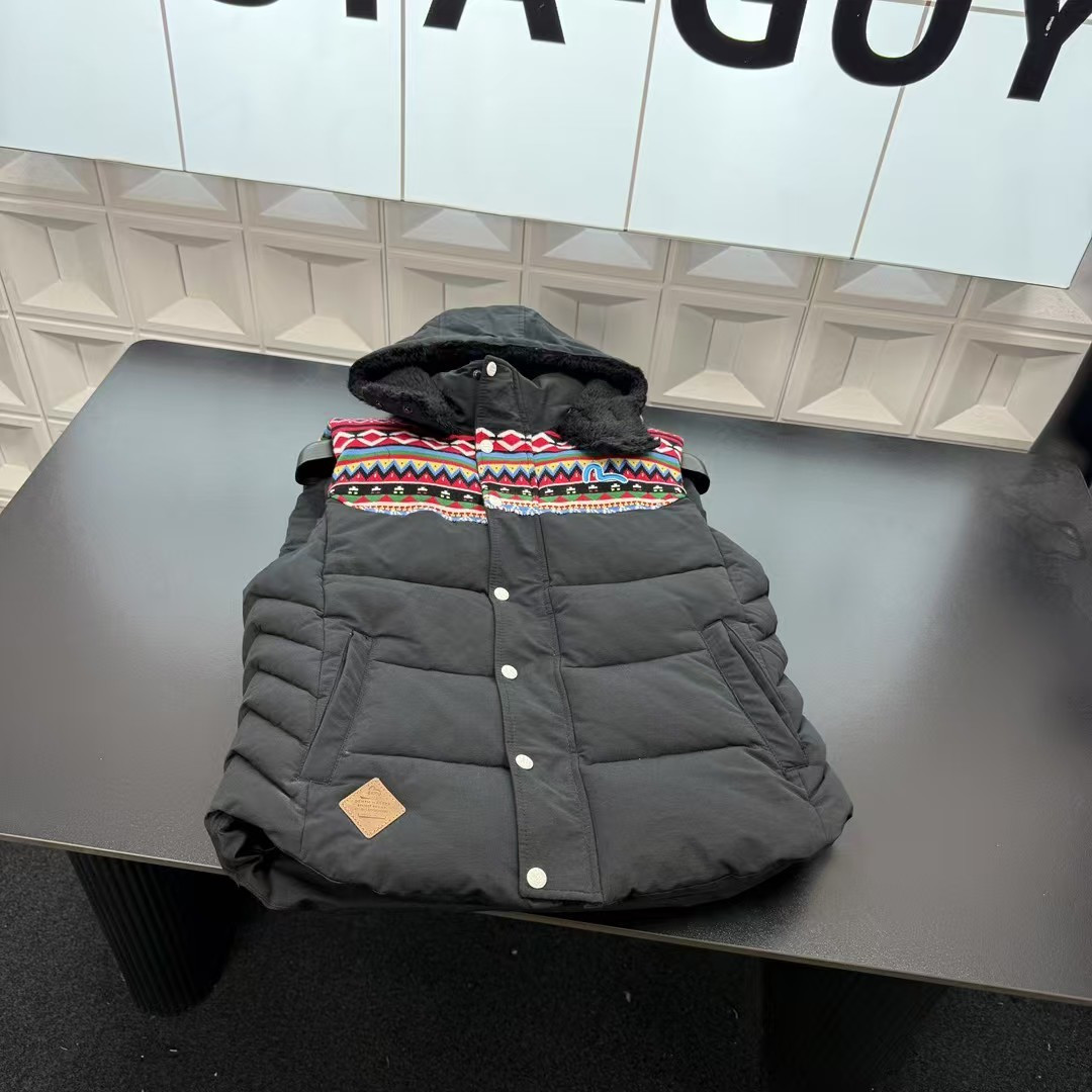 秋冬爆款热销款推荐Evisu福神羽绒连帽马甲 半拼接设计满印 404302