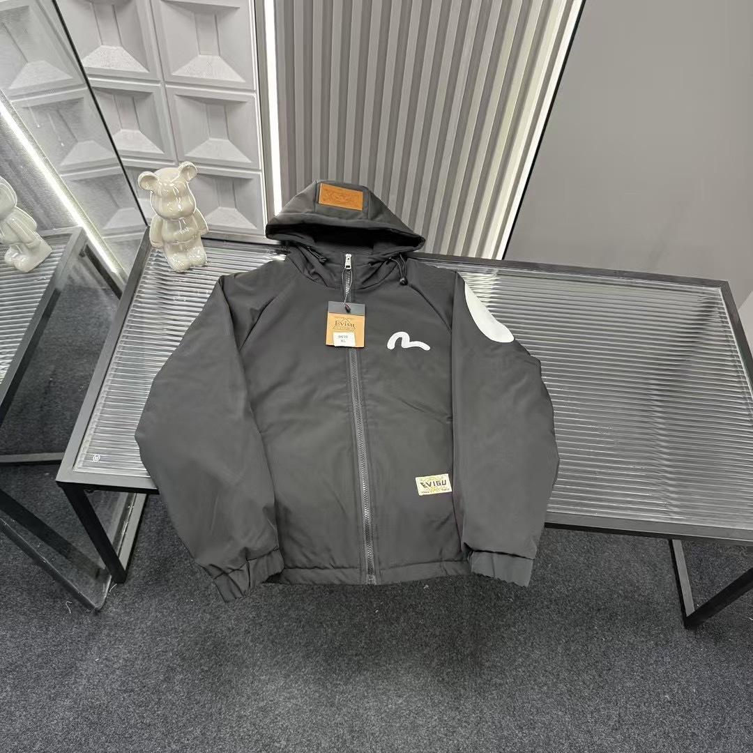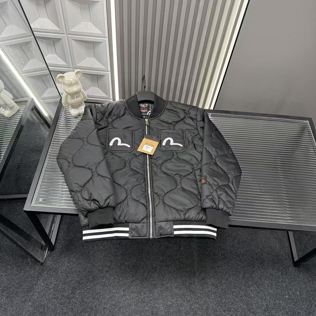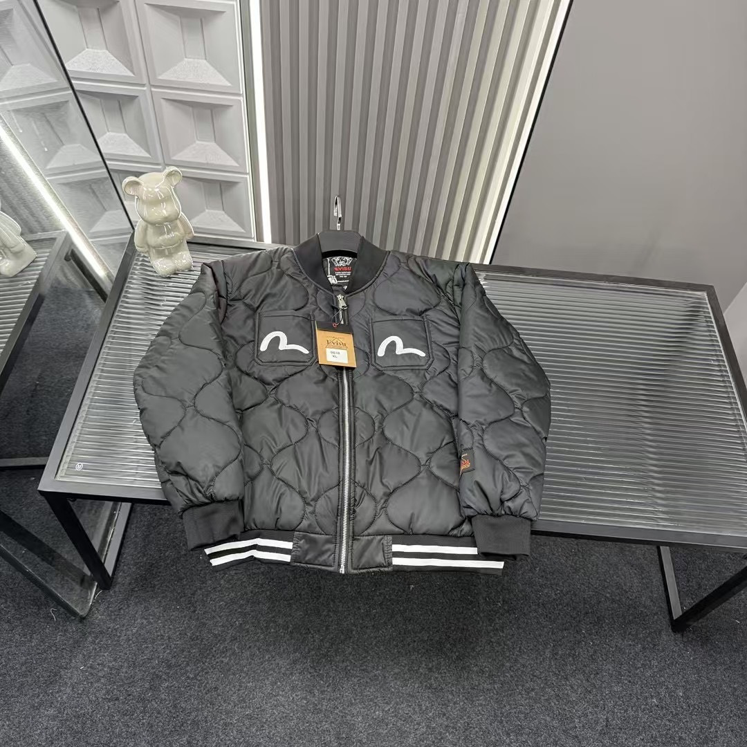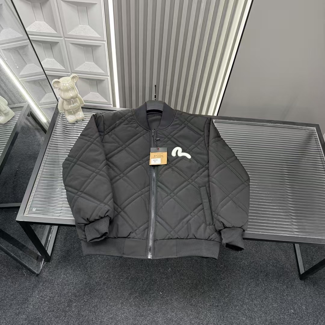 秋季热销款推荐Evisu福神海鸥毛巾绣字母菱格二棉外套 三标 447165