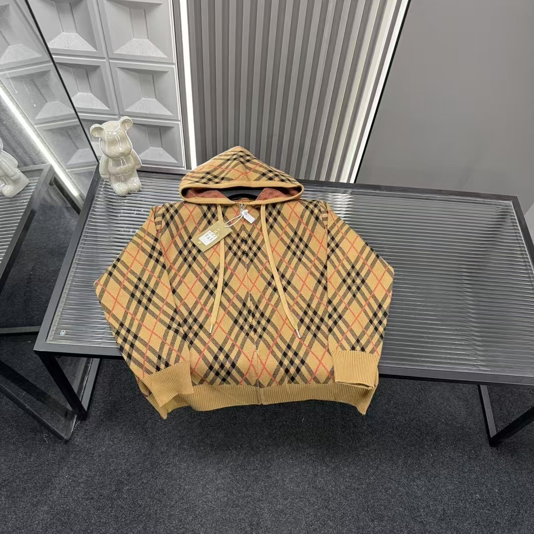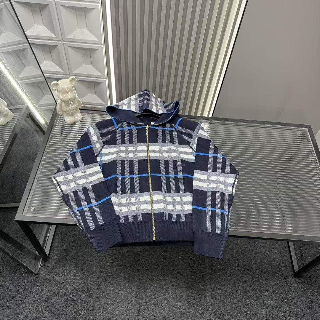 秋季热销款推荐巴宝莉满印条纹格子针织开衫外套 三标齐全官网一 447162