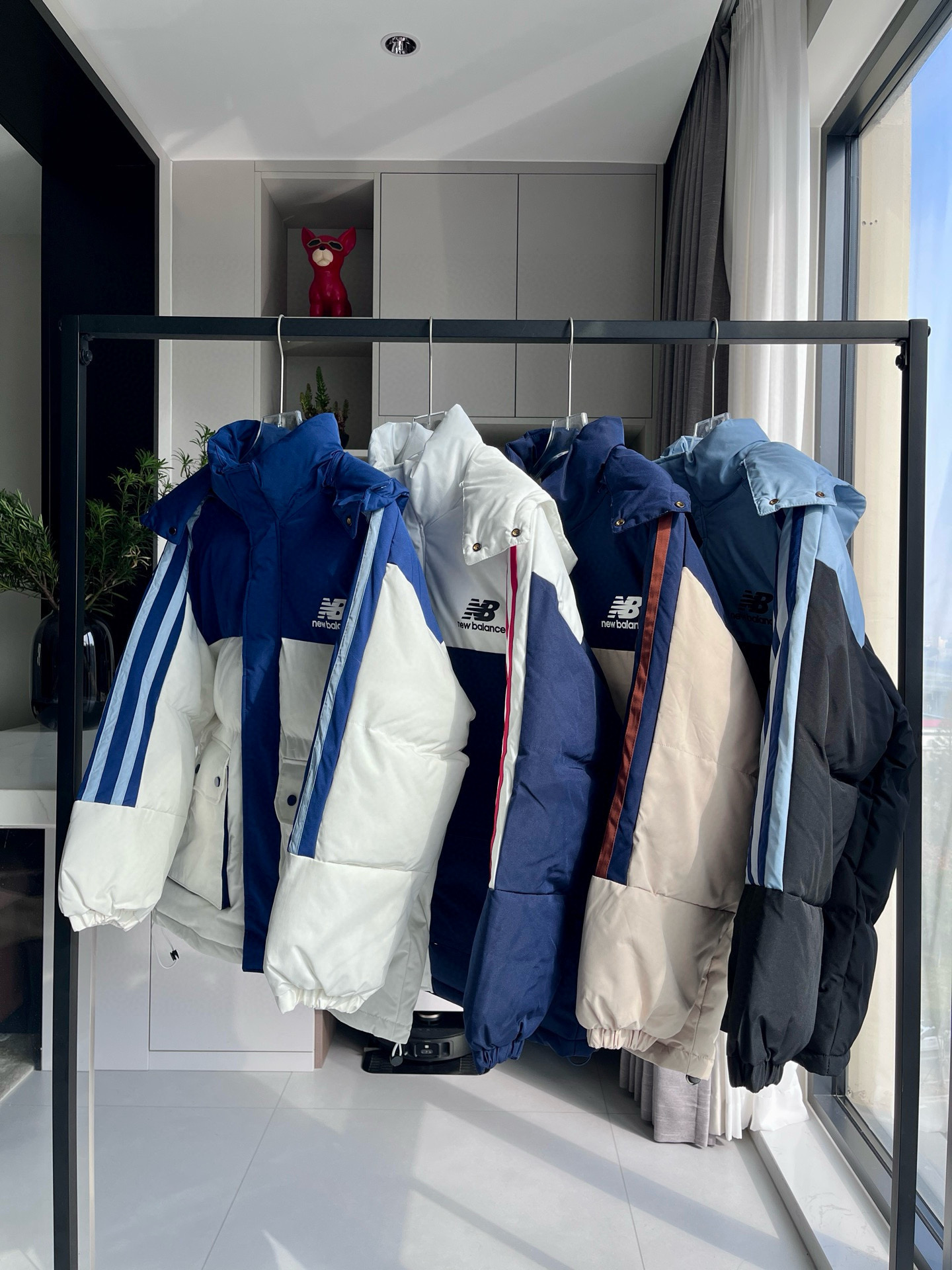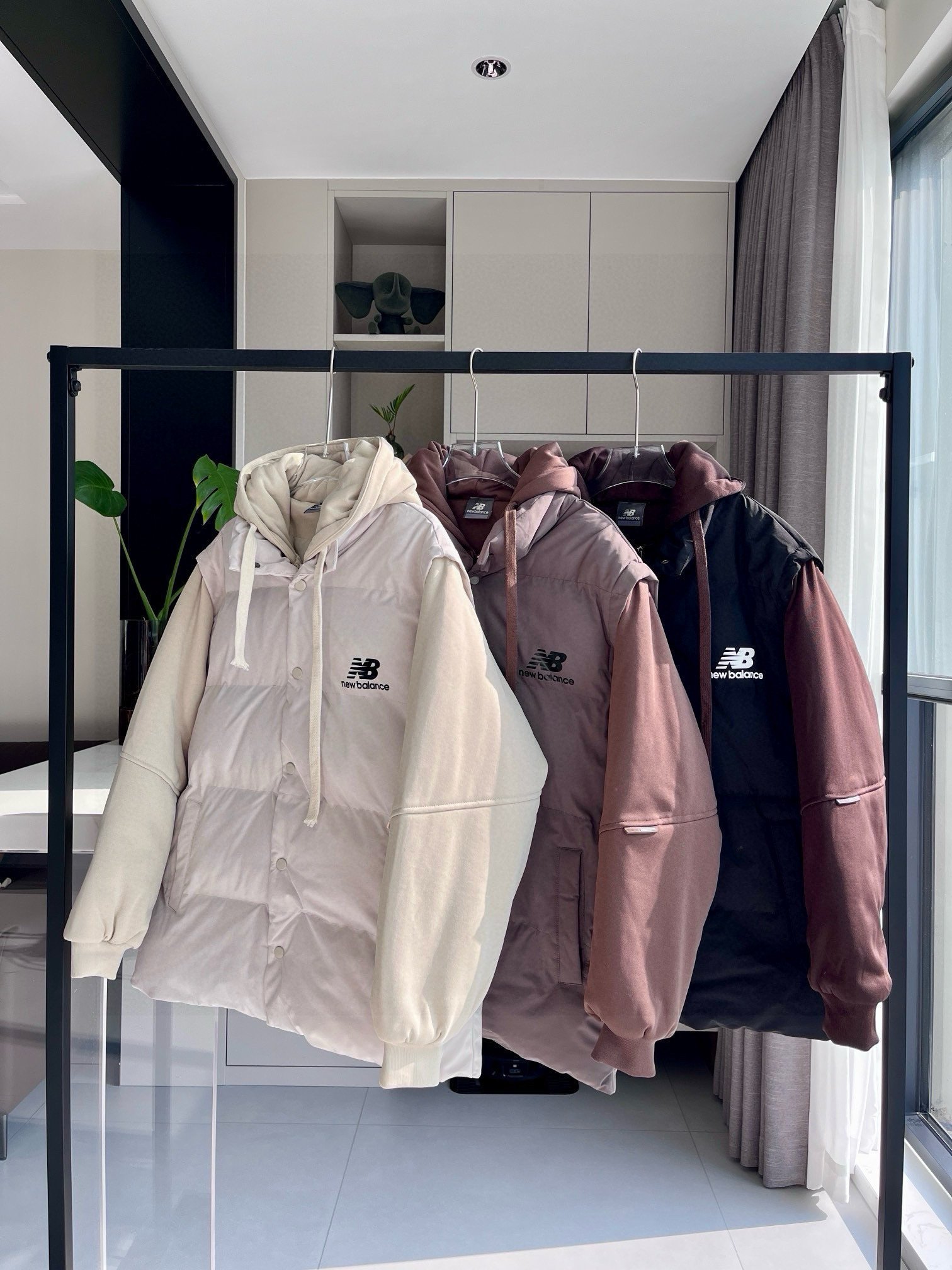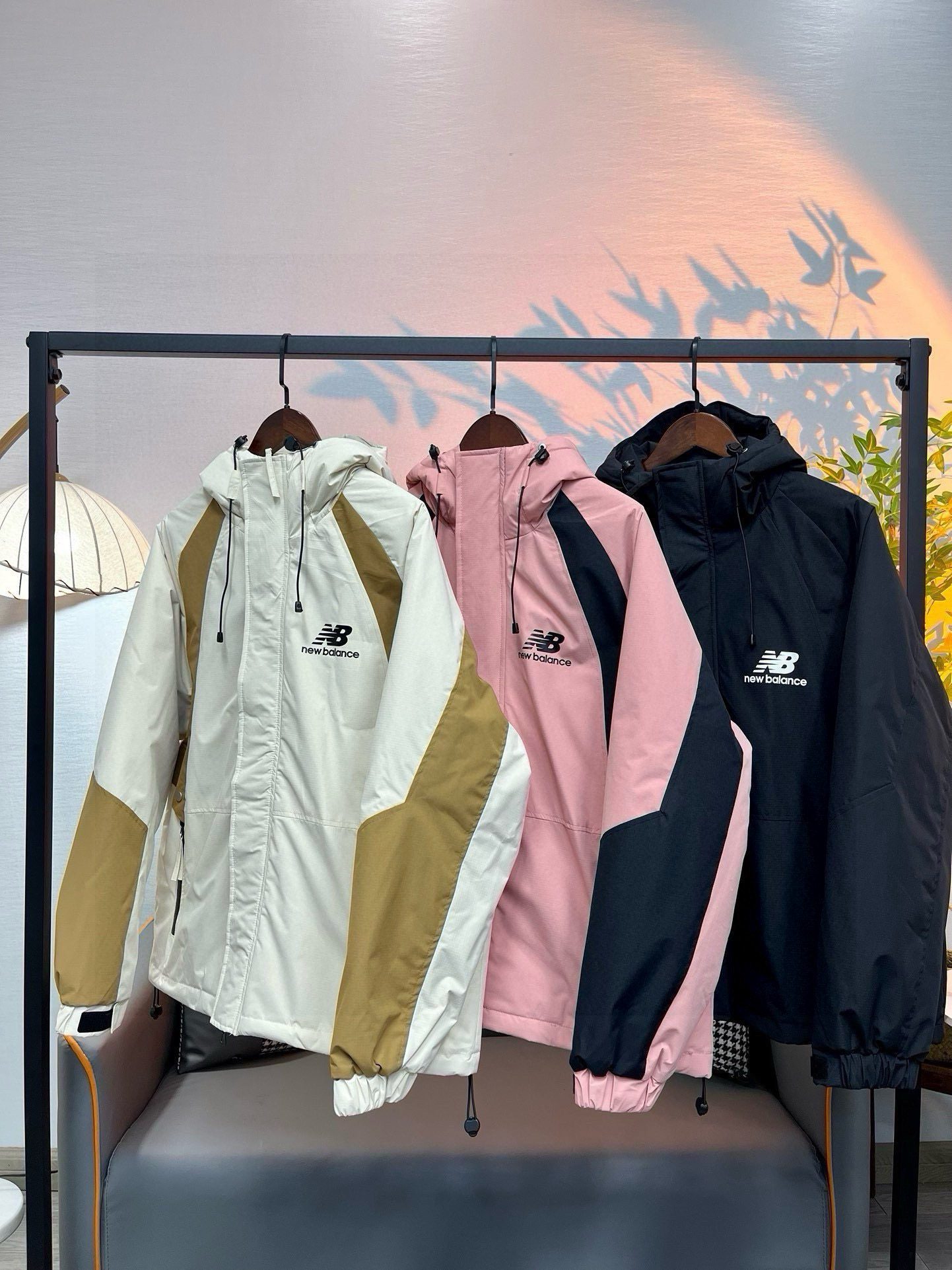 NB三色连帽假两件棉服