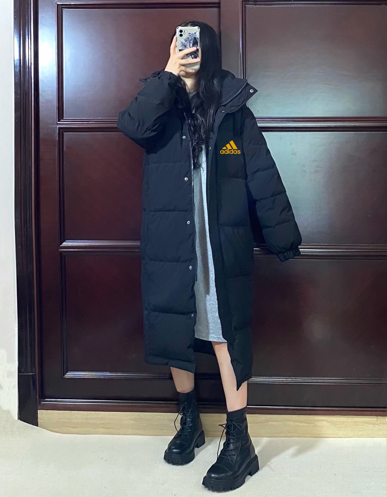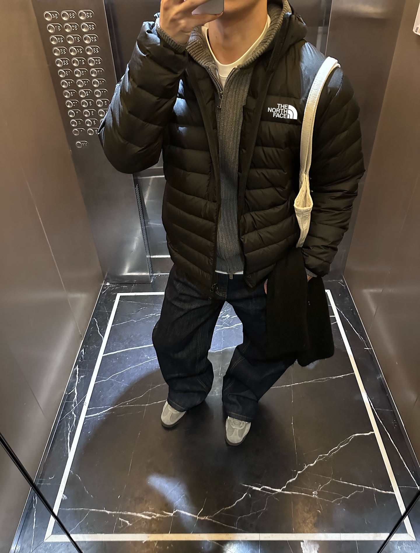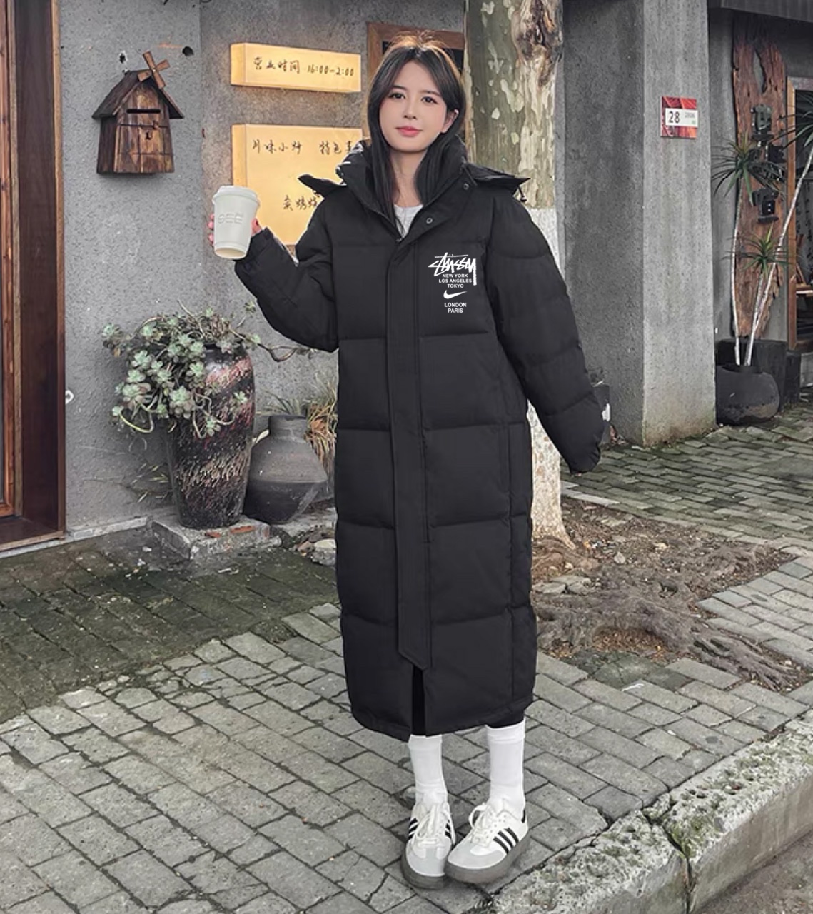NB三色连帽假两件棉服