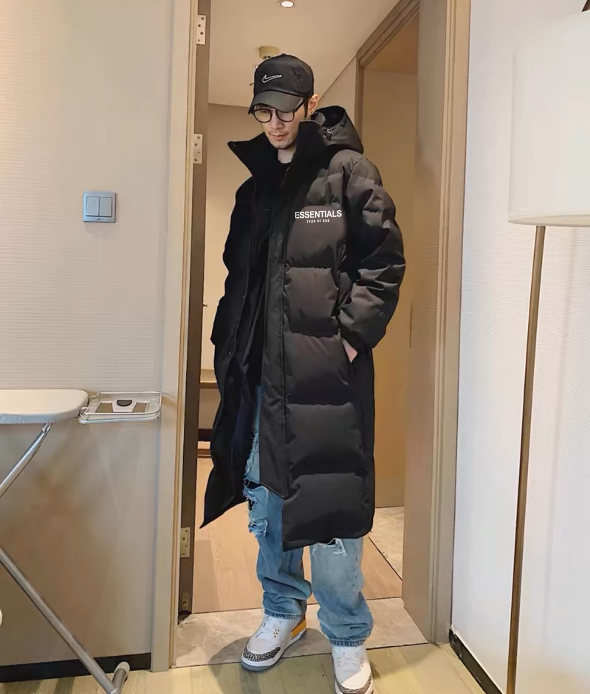 乔丹假两件连帽棉服