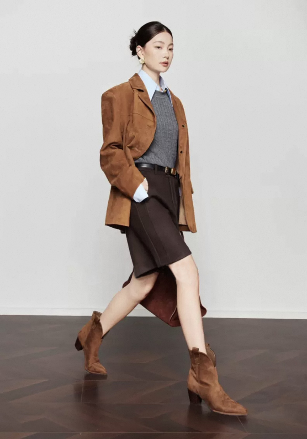 2025冬季新款高腰加厚醋酸羊毛A字五分西装短裤靴裤 配腰带 420727