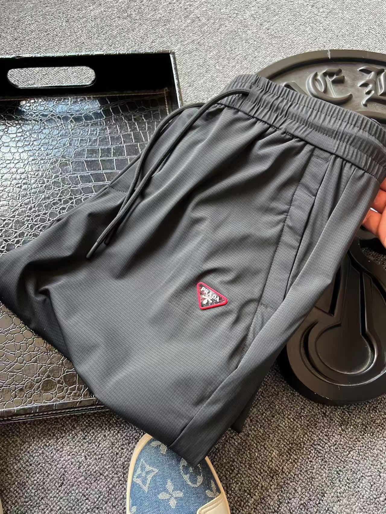 prada织带字母三角牌运动毛圈短裤 寻 422942