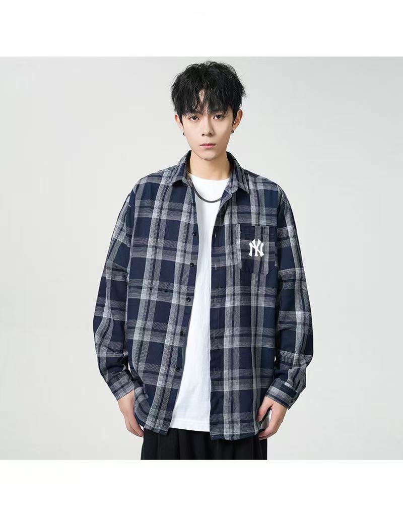 MLB纽约洋基队25春秋季新款港风宽松工装多口袋格子撞色翻领 334265