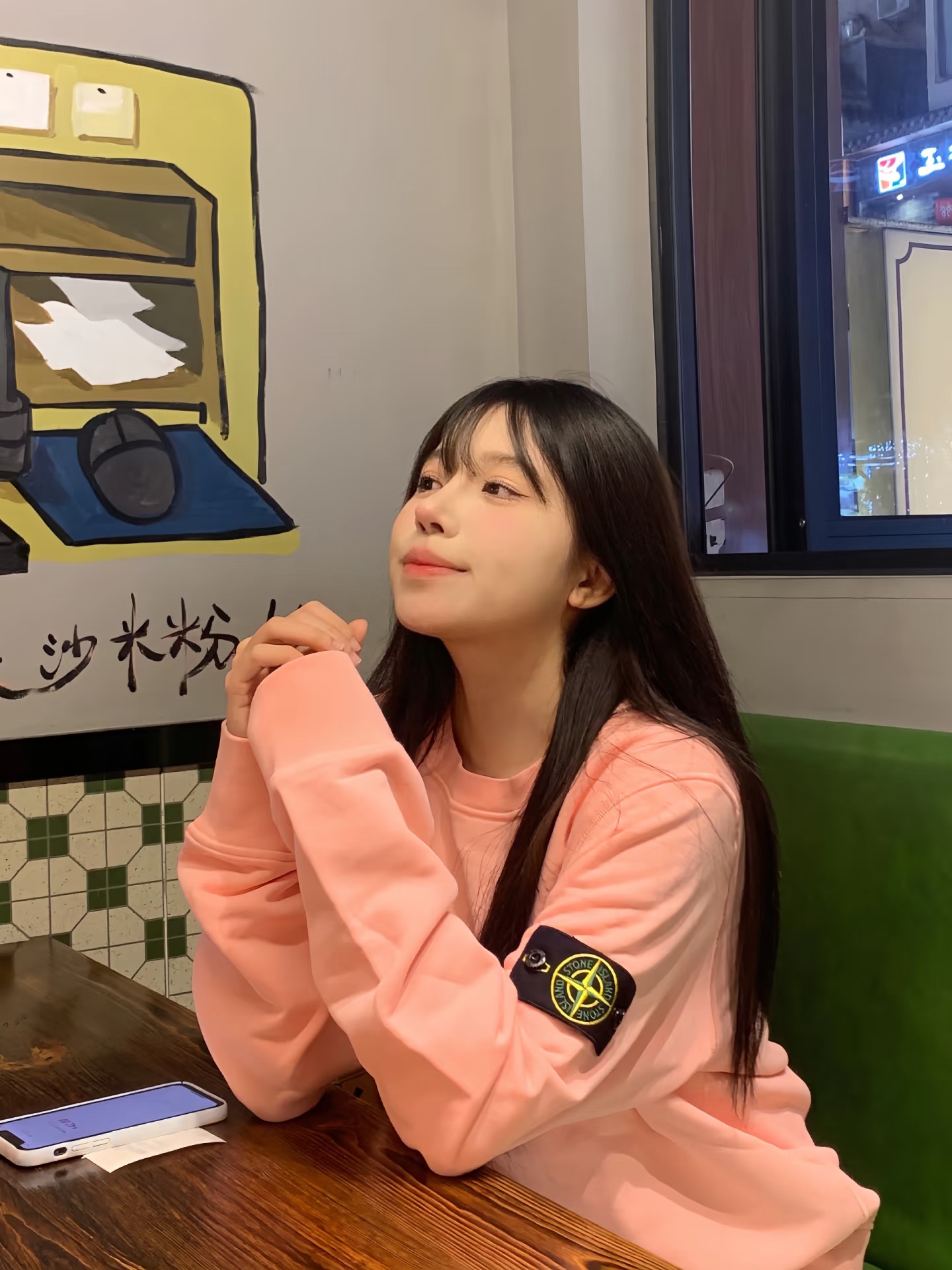 StoneIsland石头岛新款臂章脏粉色加绒圆领卫衣