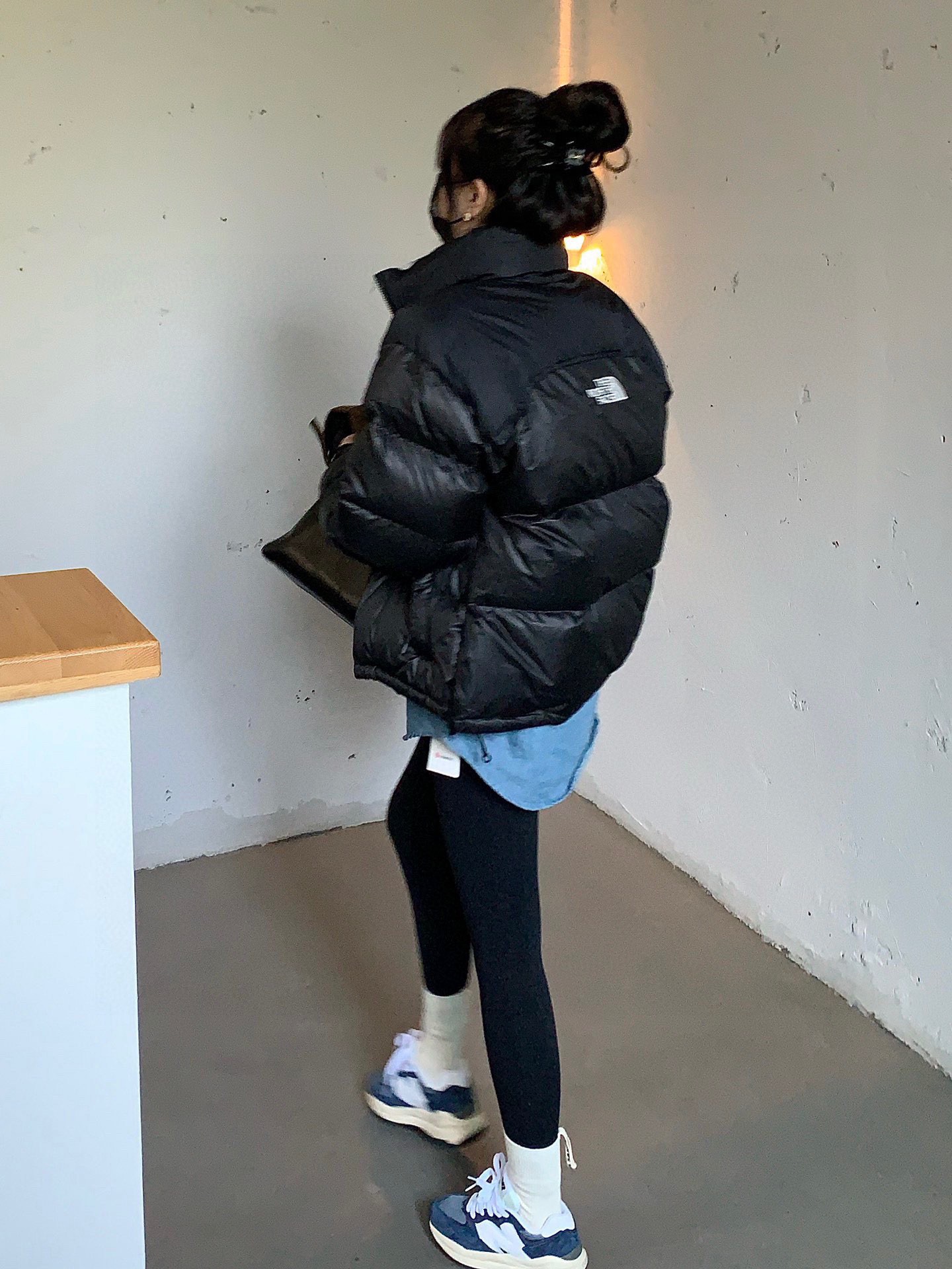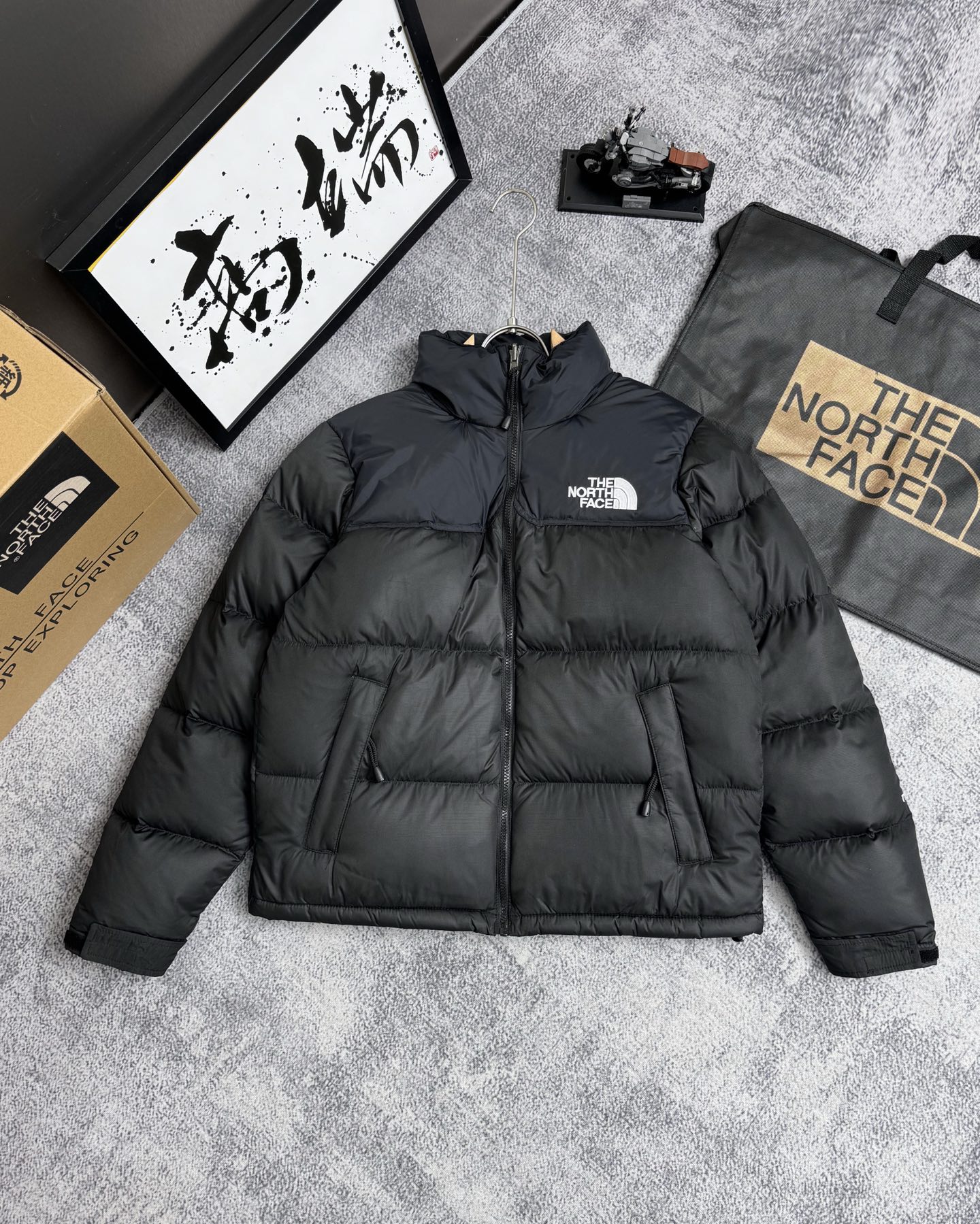 白鸭绒北面The North Face黑色大被子复古拼接防水 423637