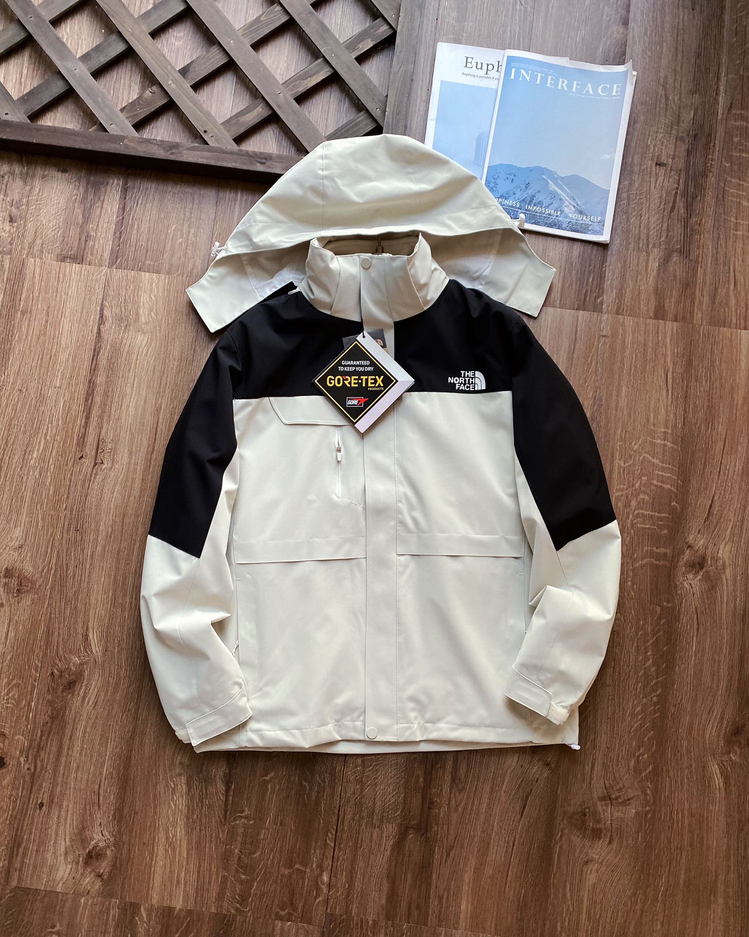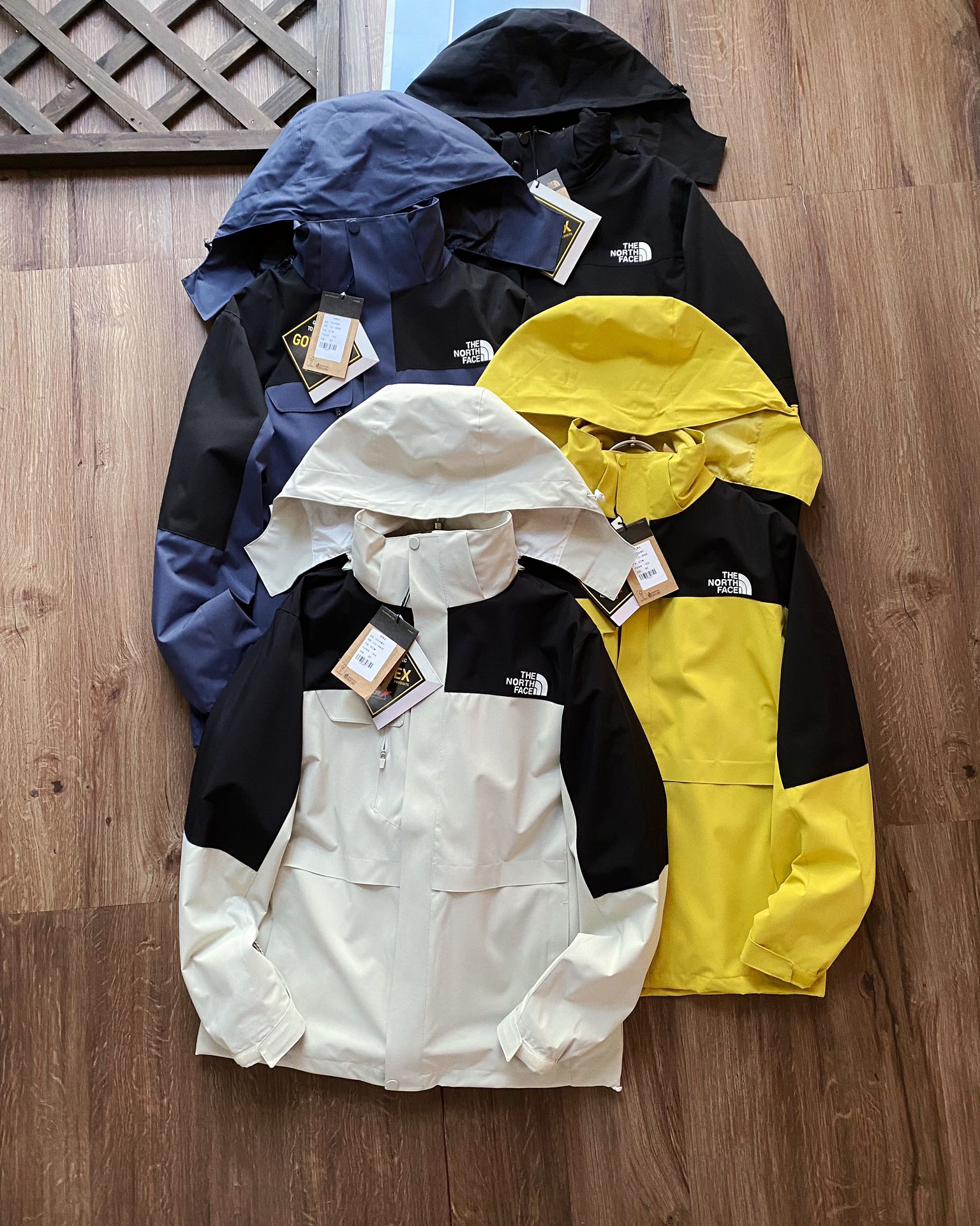 高版本北面拼色三色款连帽冲锋衣外套情侣男女同款经典The N 339296