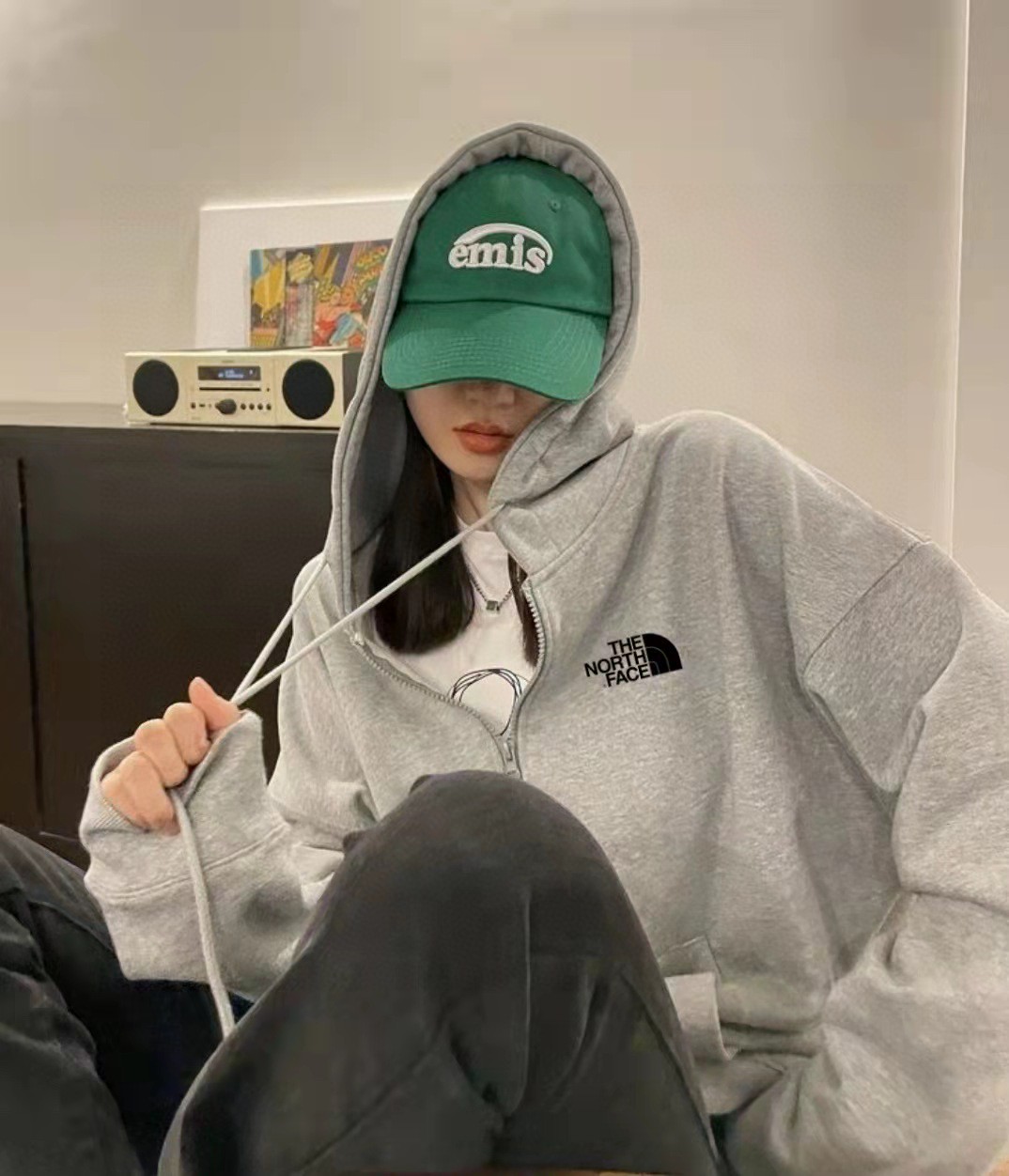 北面The North Face简约百搭落肩宽开衫卫衣连帽外 340136