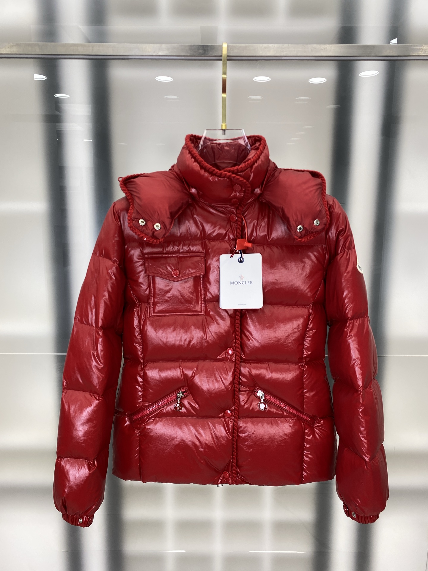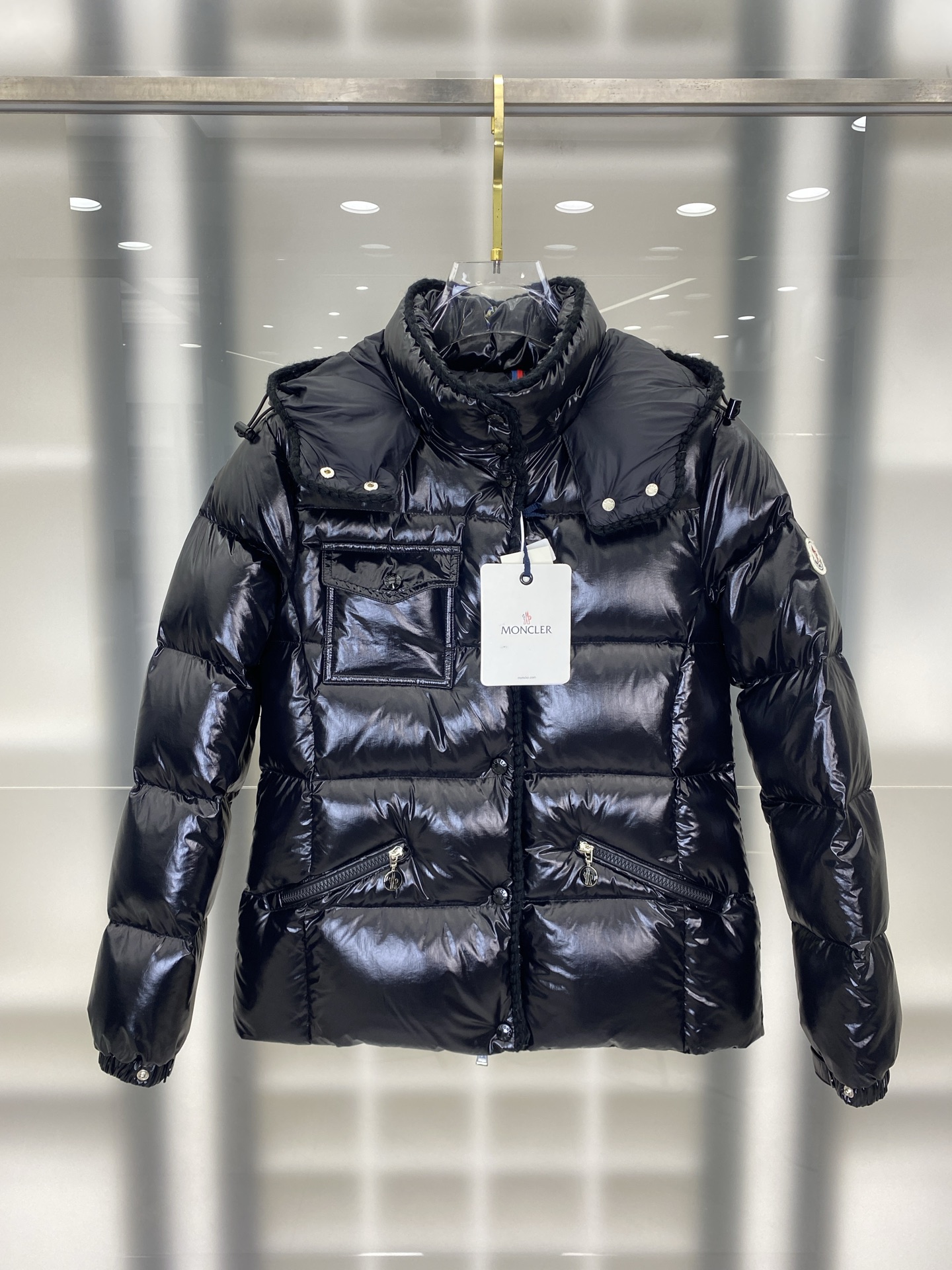 Moncler Parana羽绒夹克以其闪亮漆面尼 349812