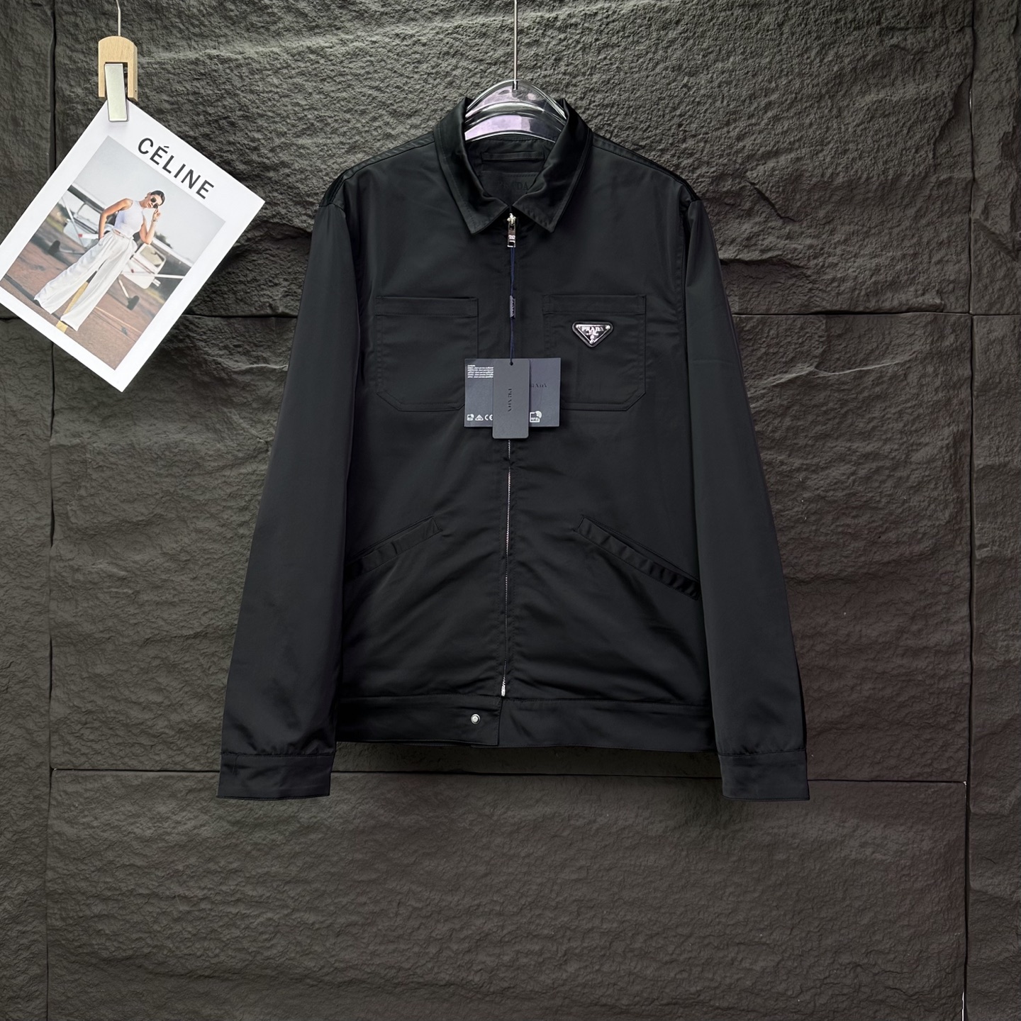 普拉达2025新款多口袋金属三角徽章情侣款翻领拉链外套