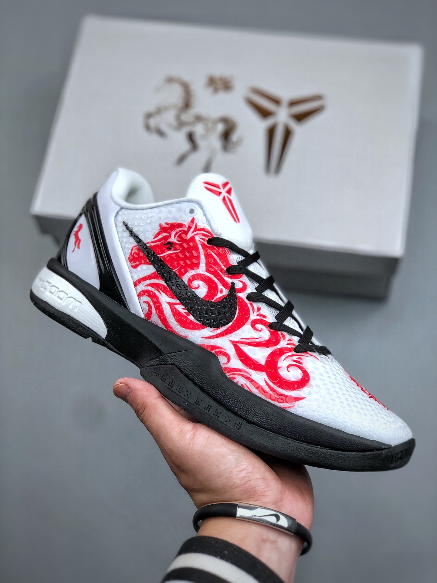 科比6代马年限定款 国风美学拉满红焰纹络缠绕鞋身 黑白撞色勾 119260