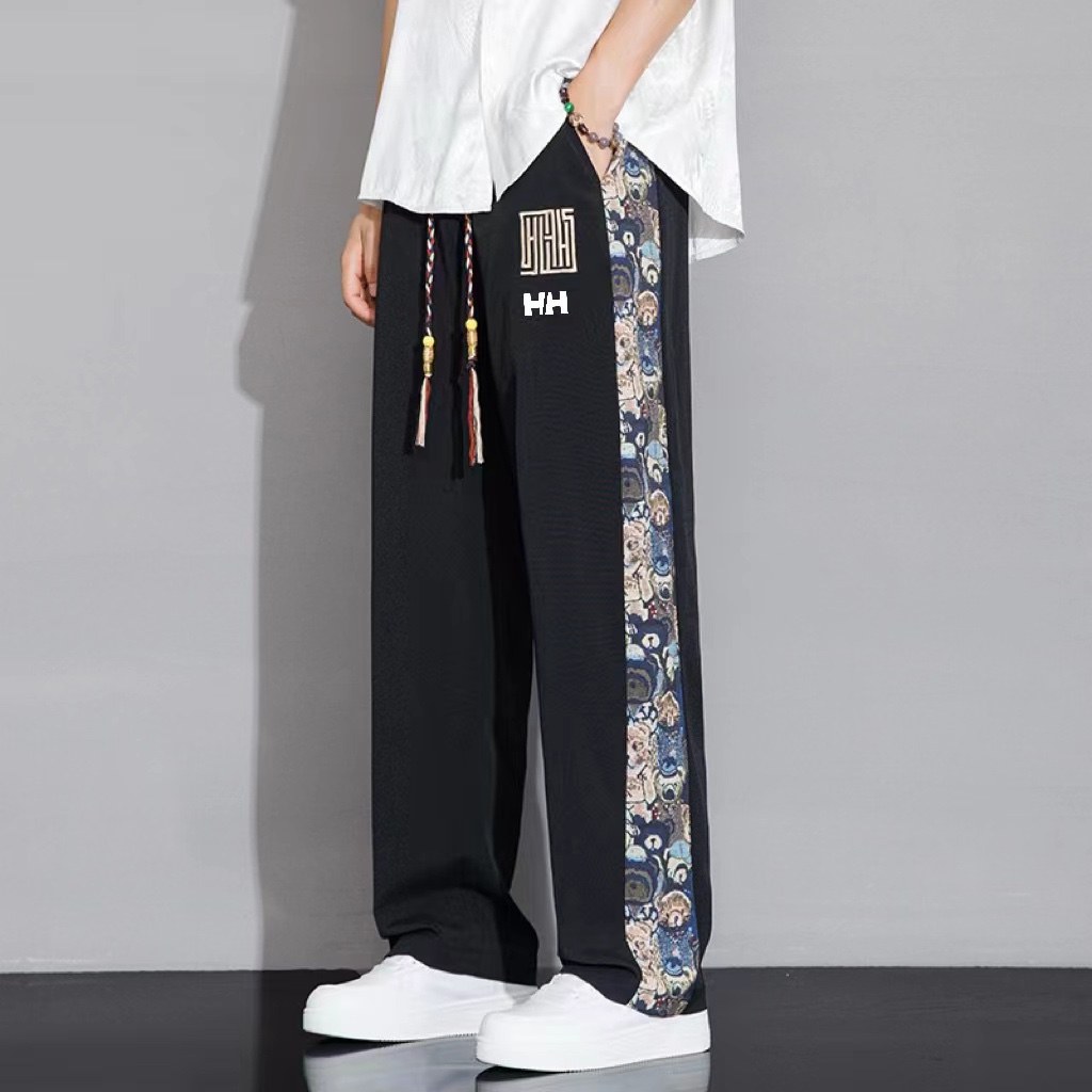 海丽汉森HH国风刺绣休闲裤韩版潮流拼接帅气 423469
