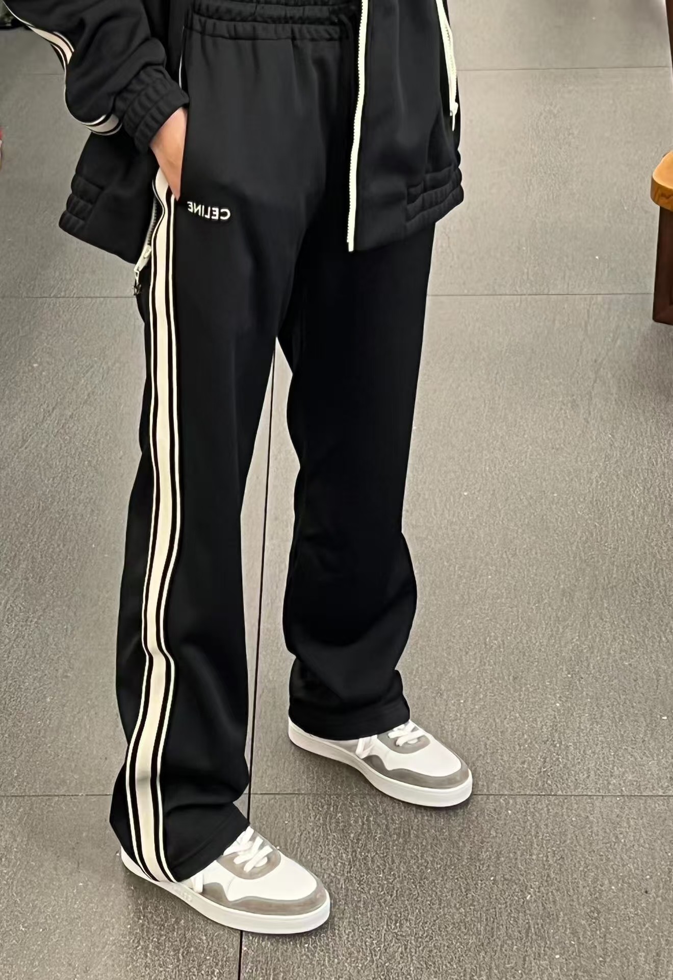 高品质 赛琳Celine冬季新款情侣款加厚织带长裤 宽松版型 419515