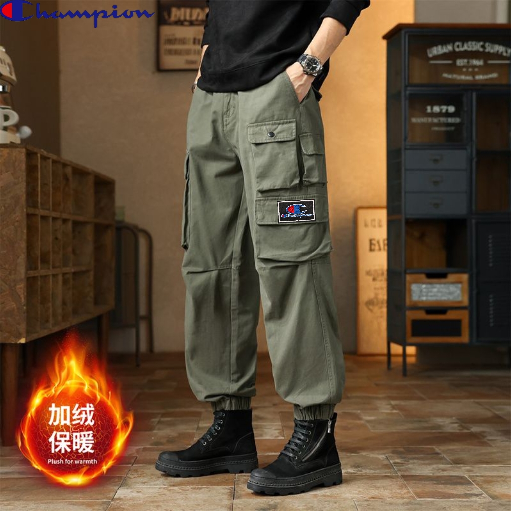 冠军champion冬季新款 男士松紧腰多口袋加绒加厚工装口 416233
