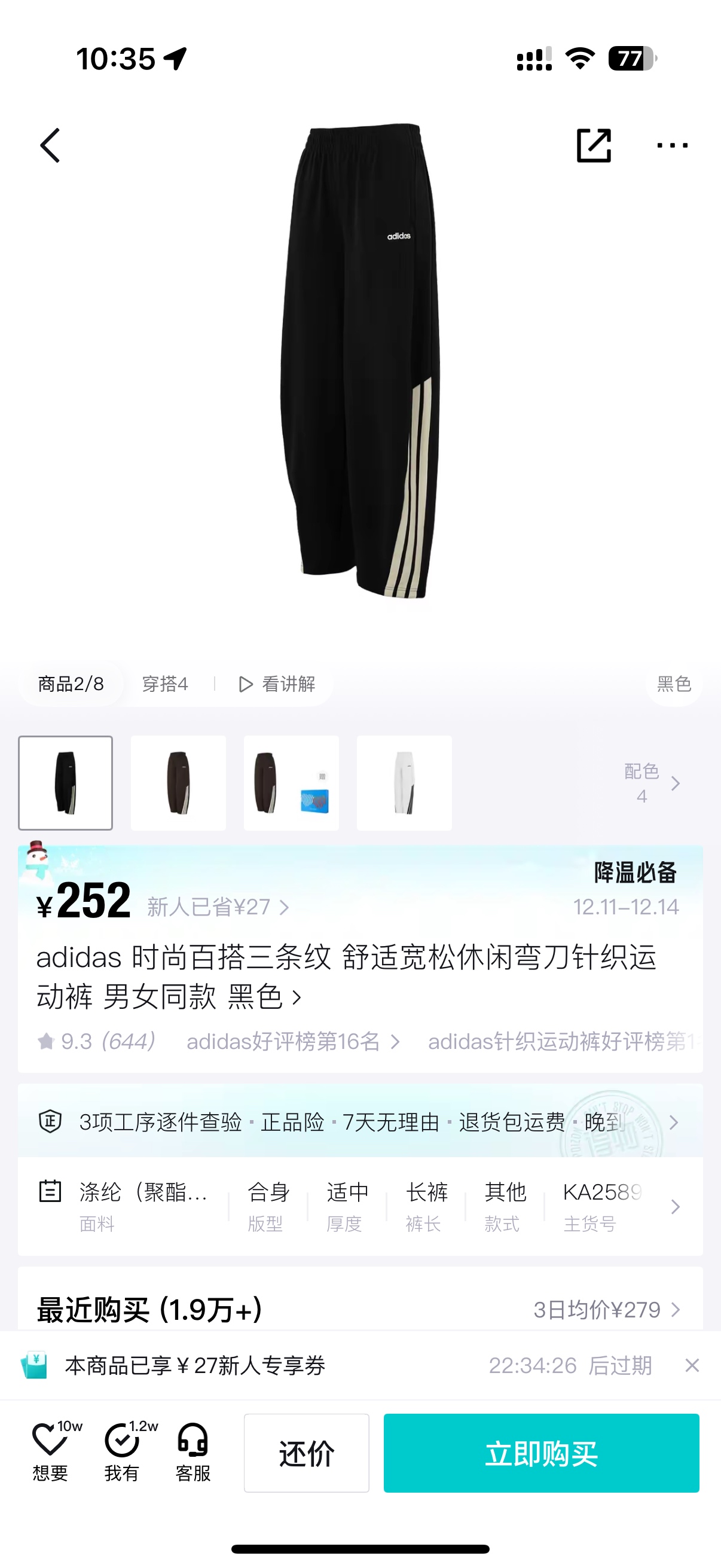 原版质量 对标千元裤700克加绒裤 刺绣阿迪达斯Adidas 403600
