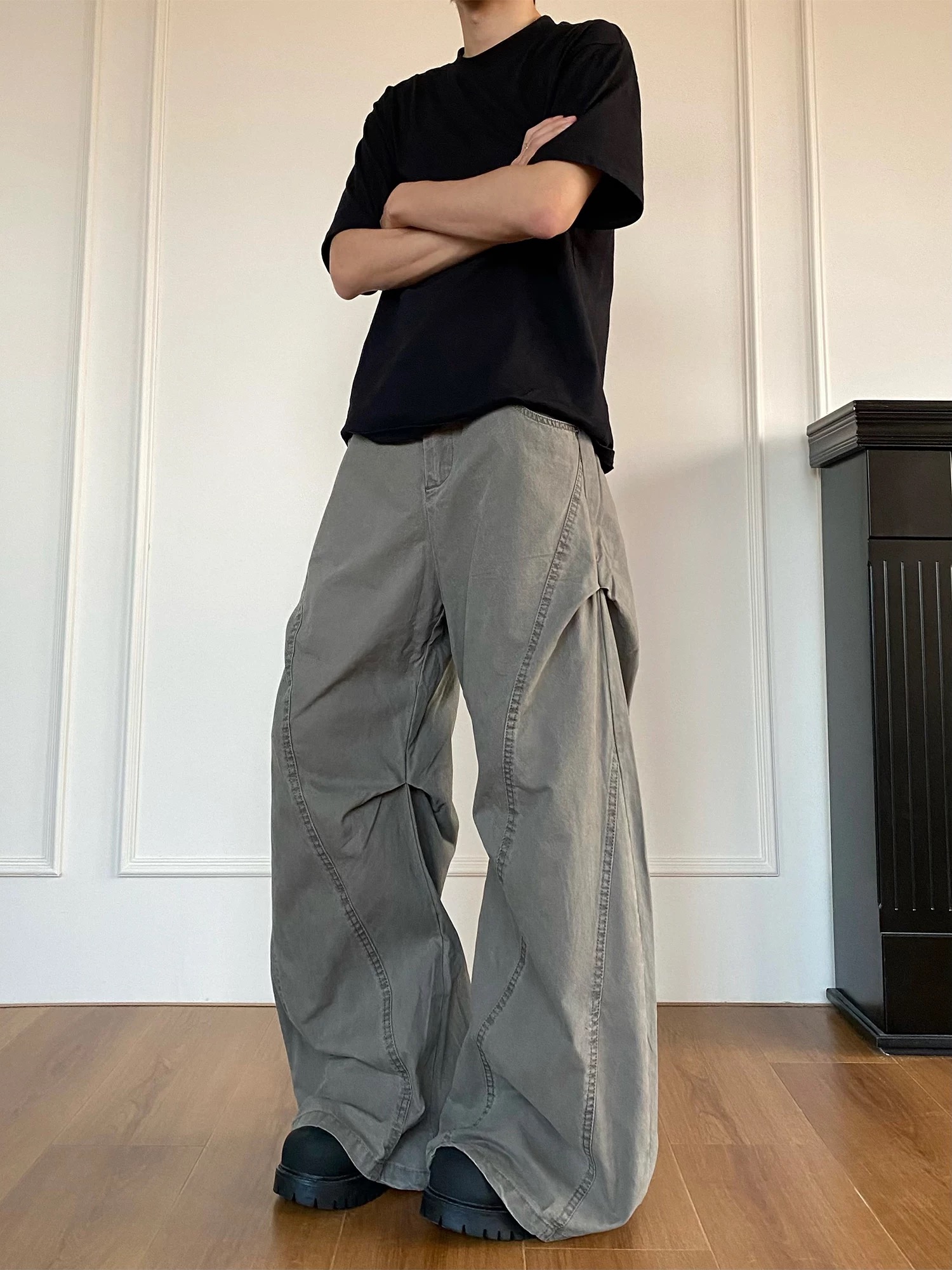 美式复古宽松廓形解构设计感工装裤男女宽松 579302