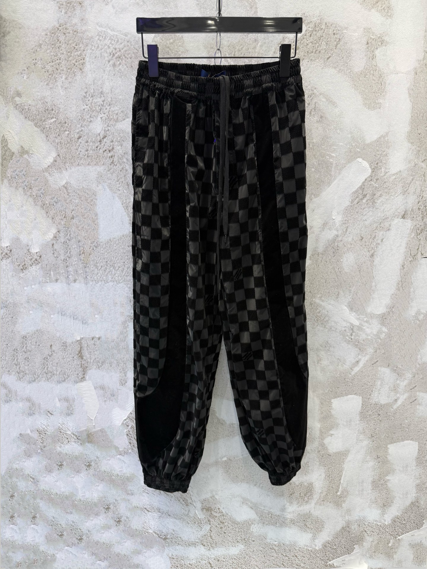 V正确版本棋盘格植绒休闲长裤