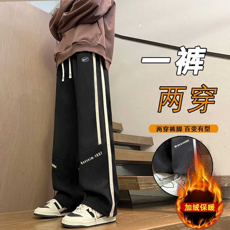 NIKE 耐克秋冬弹力加绒加厚直筒男士阔腿牛仔长裤
